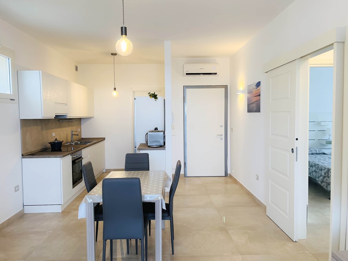 Benvenuto nel tuo monolocale con vista mare a Porto Cesareo! Sara' il vostro luogo ideale per godervi una vacanza indimenticabile sulla costa pugliese.Situato proprio di fronte al mare, potrete godere di una vista spettacolare e di tramonti mozzafiato direttamente dalla vostra ampia terrazza. Ideale per coppie che vogliono godersi la propria intimita' dalla vostra bellissima terrazza privata. La posizione privilegiata vi permette di raggiungere facilmente la spiaggia.