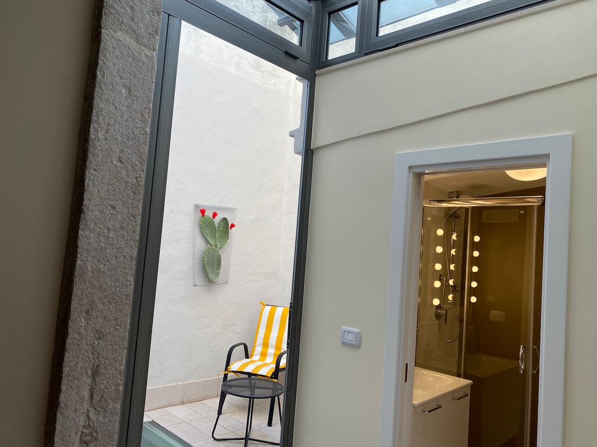 Studio yang menyenangkan dengan fasilitas dan halaman internal; baru saja direnovasi, dilengkapi dengan setiap kenyamanan, yang menjamin ketenangan dan privasi. Terletak di salah satu Palazzi paling bergengsi di Pusat Bersejarah Trani, tempat ini berjarak sepelemparan batu dari Katedral dan atraksi utama kota ini. Apartemen ini memiliki: Tempat tidur double + tempat tidur single Wi - Fi. Dapur dengan pelat induksi portabel dengan 1 lokasi Microwave Kulkas Pemanas Penyejuk Ruangan