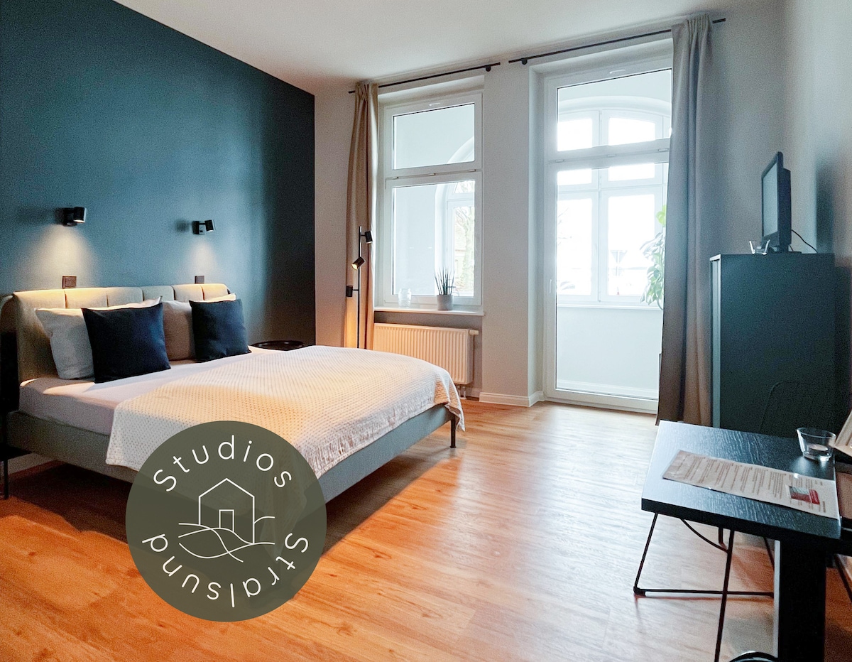 Studio dengan balkon dan pemandangan pelabuhan