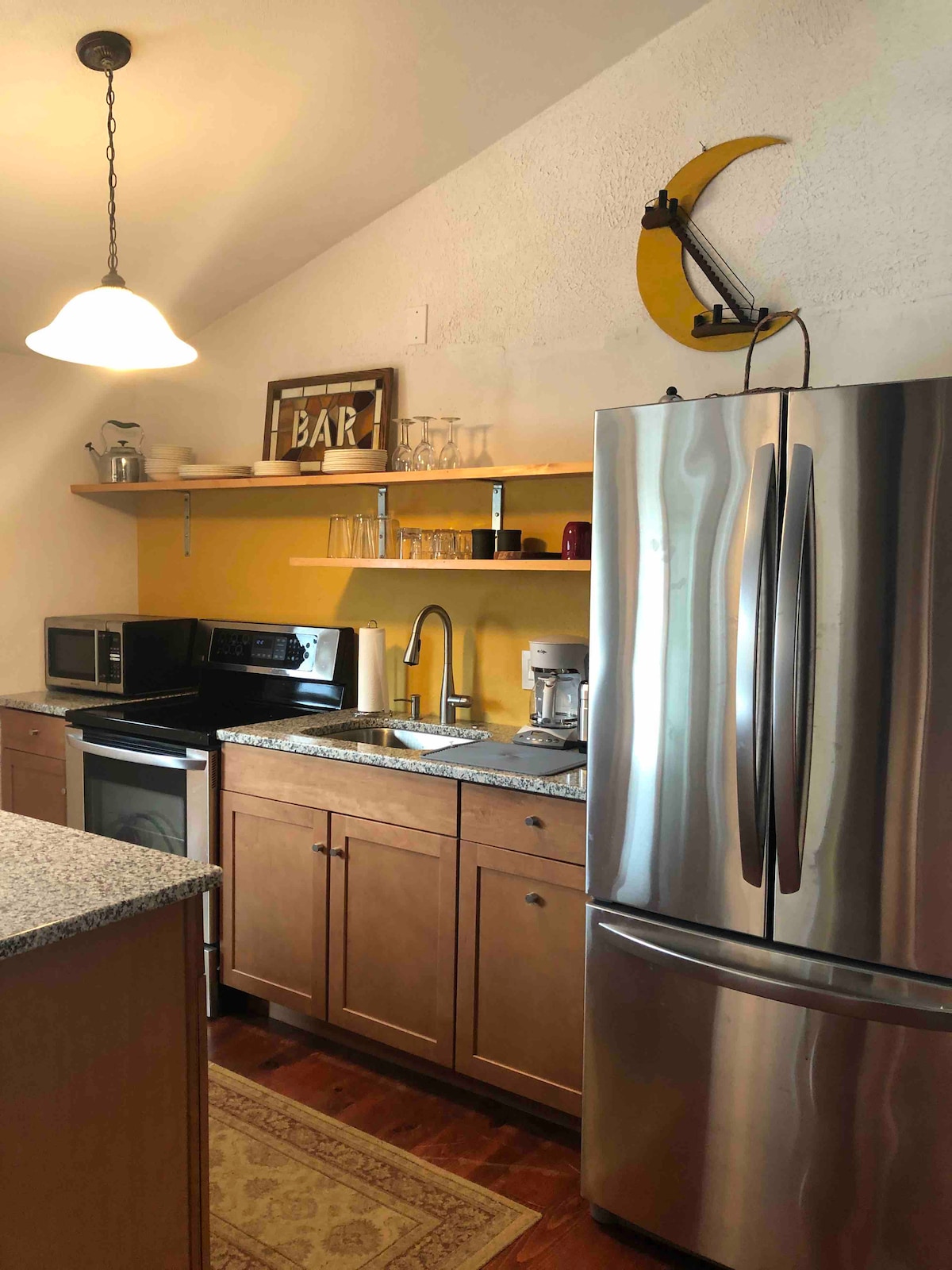 A cute studio apartment in the basement of a newly renovated home. Guests have a private entrance with their own private bathroom. You also have use of a full-size washer and dryer. Other amenities include an honor bar stocked with beer and wine, an arcade style game with over 200 popular titles including Ms. Pac Man, and coffee/tea. Please note that we live upstairs, but the space is private. It is separated by a stairwell and a locking door. It is comparable to a hotel room, but nicer.