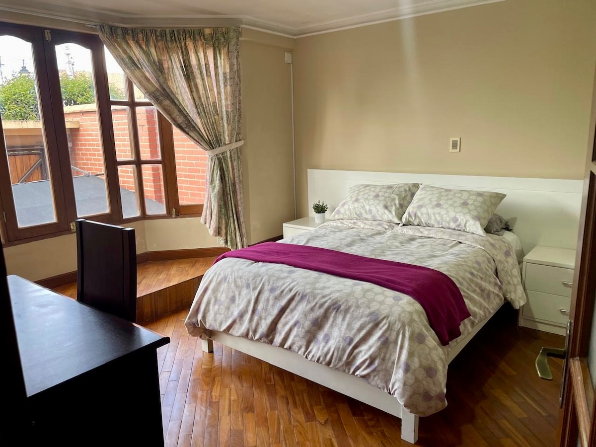 Rasakan kenyamanan di apartemen kami, dengan pemandangan kota yang menakjubkan dan teras pribadi menawan yang menghadap Parque Bolívar. Benamkan diri Anda dalam ketenangan rumah yang nyaman dan aman ini, yang terletak di kawasan perumahan yang tenang hanya beberapa langkah dari benteng peradilan, Klub Sucre Tenis, Boliviana de Aviación, dan beberapa menit dari alun - alun utama dan tempat wisata utama kota. Bersiaplah untuk pengalaman yang tidak terlupakan!