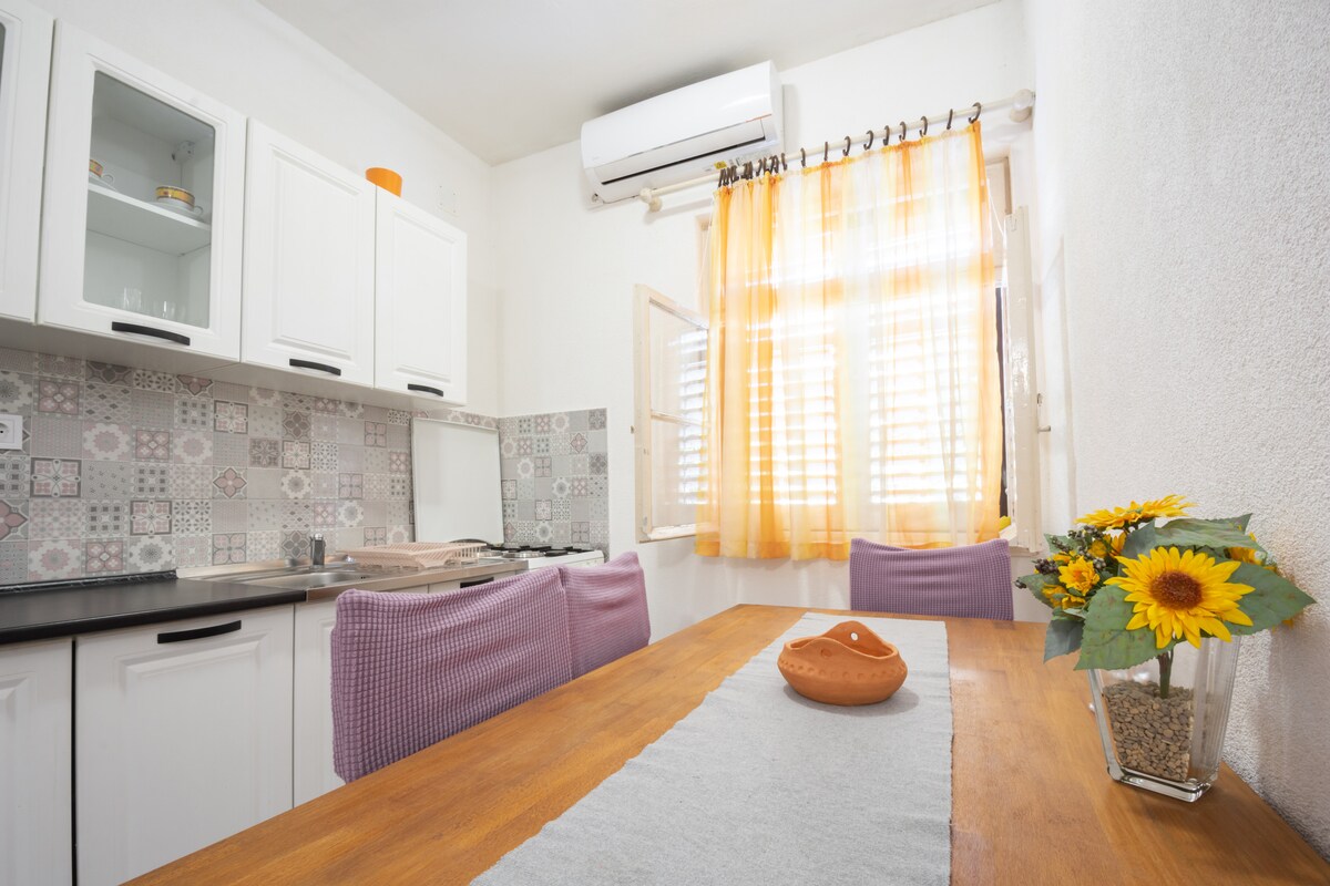 Apartemen studio mewah dengan dapur, kamar mandi, TV, dan AC ideal untuk dua orang. Parkir gratis juga disertakan. Stasiun bus, pelabuhan Gaženica, dan City Center berjarak 5 menit berkendara dengan mobil. Pantai berjarak 300 m dari apartemen.