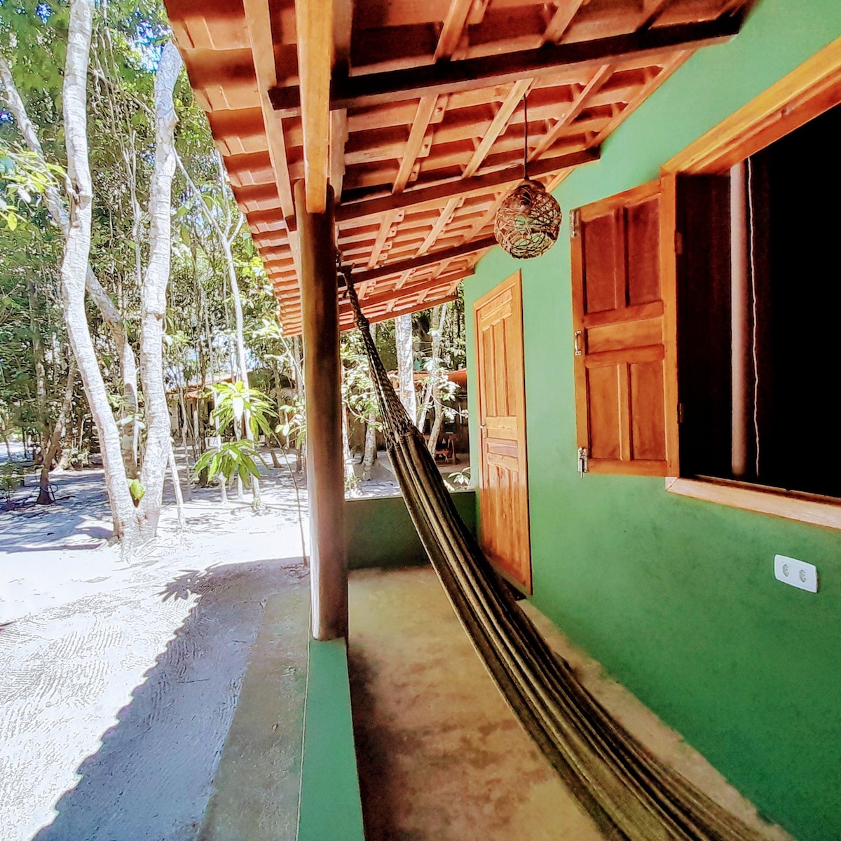 30 meter dari pantai dan dikelilingi oleh Hutan Atlantik, Ibirapitanga Chalet dibuat untuk tamu menikmati ketenangan Cumuru oleh angin laut dan suara ombak. Cocok untuk pasangan dan wisatawan yang mencari ketenangan pikiran - termasuk pekerja jarak jauh! Dan alam? Karena kasih sayang kami terhadap fauna lokal, tamu mungkin bisa menyapa Macaco Prego, mendengarkan nyanyian Guigó yang jelas dan mengamati warna Tiê - Sangue yang semarak. Mudah - mudahan, Sloth muncul di salah satu pohon di halaman belakang!