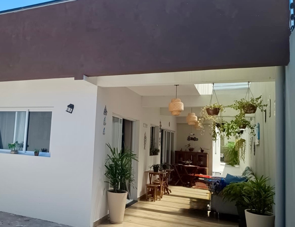 Rumah ber - AC yang baru dibangun, dapur lengkap, kamar tidur dengan tempat tidur berukuran queen dan tempat tidur susun, ditambah perlengkapan tempat tidur berkualitas dan kamar mandi yang luas dan nyaman. Terletak di depan pantai, menawarkan akses mudah ke pasir. Area luar ruangan memiliki taman yang indah dan balkon yang luas dengan satu set sofa dan meja dengan kursi untuk momen santai. Tempat ini juga menawarkan internet serat optik dan Smart TV untuk kenyamanan Anda. Ideal bagi mereka yang mencari ketenangan dan kenyamanan di tepi laut.