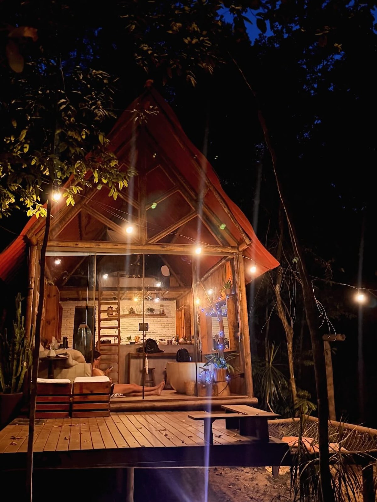 Kabin A-frame pertama di Guarajuba telah hadir. Konsep penginapan modern bagi pasangan untuk menikmati momen romantis di tengah alam. Tidur setelah bersulang dengan anggur yang enak sambil menikmati perapian dan bangun dengan suara burung. Di sini Anda dekat dengan segalanya: Restoran, supermarket, apotek, dan terutama Pantai Guarajuba dan Pantai Forte yang terkenal... Sangat cocok untuk: Ulang Tahun Pernikahan Bulan madu Sesi pemotretan Pengungkapan Teh Kantor rumah