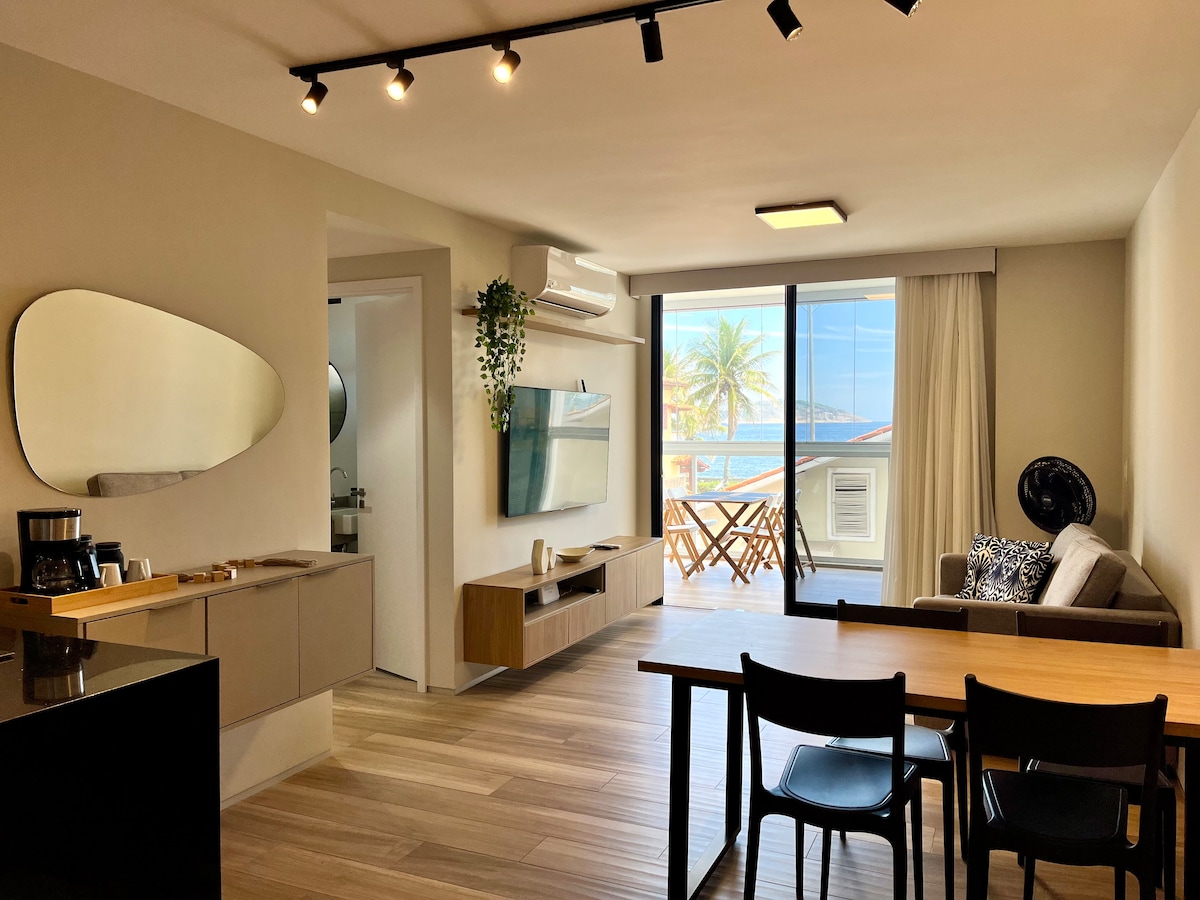 PEMANDANGAN INDAH Pantai Camboinhas. Jika Anda tersandung di balkon, Anda akan jatuh di pasir pantai. Apartemen ini berada di depan pantai, pemandangan laut yang LUAR BIASA dan INDAH! Cukup seberangi jalan dan Anda akan berada di pantai. RUANG GARASI. Kamar dengan tempat tidur double dan sofa bed di ruang tamu untuk satu orang. AC split, SmartTV 55", Wi-Fi 800 Mbps, kulkas, microwave, kompor listrik, pembuat kopi listrik, dan peralatan umum. CANTIK DAN TERHIAS!