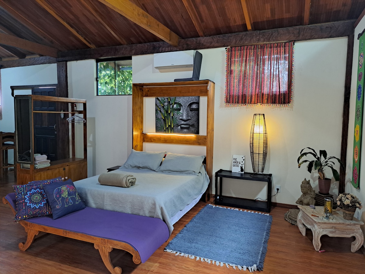 Di pondok Pukuá Anda bisa tertidur menghitung bintang - bintang, karena di atas tempat tidur ada jendela atap. Selain kamar tidur dengan ruang untuk kantor di rumah, Anda bisa bersantai di sofa (atau tempat tidur gantung) di kamar yang sangat nyaman. Permainan Meja, Netflix, Prime, Disney, dan Star GRATIS? kami punya! Dapur dilengkapi dengan segala kebutuhan Anda. Nossa Cabana memadukan pedesaan dengan kenyamanan dan setiap detail dianggap membuat masa menginap Anda senyaman mungkin. Kamar mandi yang luas dan pribadi.