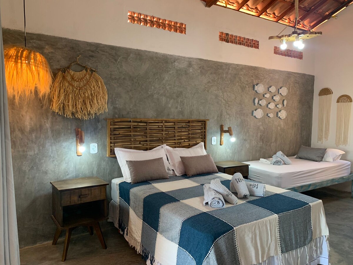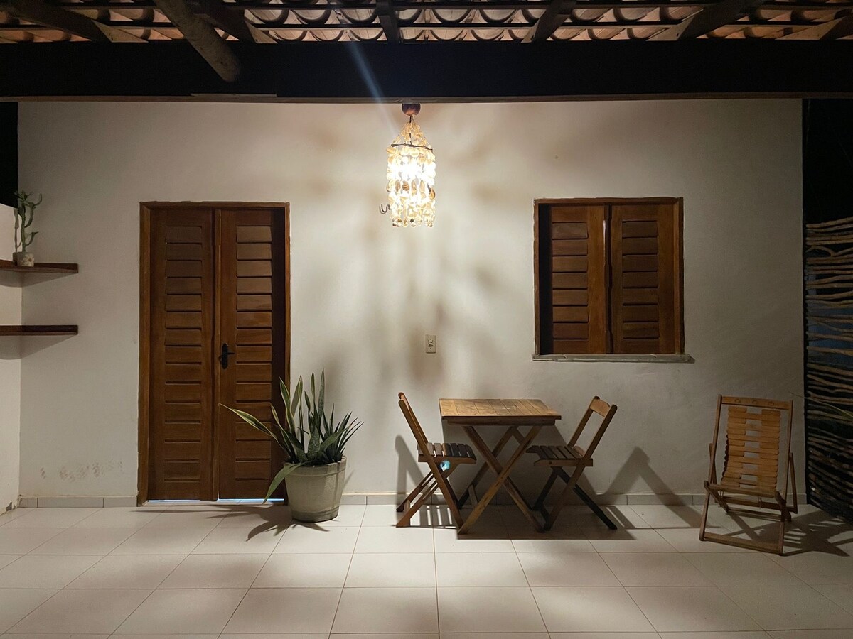 Chalet individu untuk hingga 4 orang di Barra Grande - Piauí, kami berlokasi di jalan utama dan berjalan kaki kurang dari 2 menit Anda bisa mencapai laut. Kami memiliki dapur dengan perlengkapan dasar dan peralatan makan untuk makanan kecil. Seprai tempat tidur dan handuk mandi tersedia Area luar ruangan dengan taman yang nyaman dan garis merah di balkon. Dari untuk melakukan segalanya dengan berjalan kaki, centrinho berjarak 5 menit. Di samping restoran kerja, tempat sarapan lezat disajikan dan dengan harga