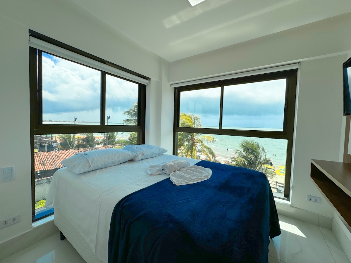 ✔️Flat di lantai 3 menghadap laut, 20 langkah dari pasir pantai dan hanya 9 menit berjalan kaki ke Rua das Sombrinhas yang terkenal, yang berada di pusat (Vilinha) Porto de Galinhas. ✔️Balkon pribadi menghadap laut, AC, TV pintar 55", kolam renang, pusat kebugaran, tempat parkir rotasi. ✔️Ideal untuk hingga 3 orang, pasangan, seprai dan handuk mandi disediakan. ✔️Lihat matahari terbit tanpa bangun dari tempat tidur, pada hari-hari dengan langit terbuka dan sesuai musim.