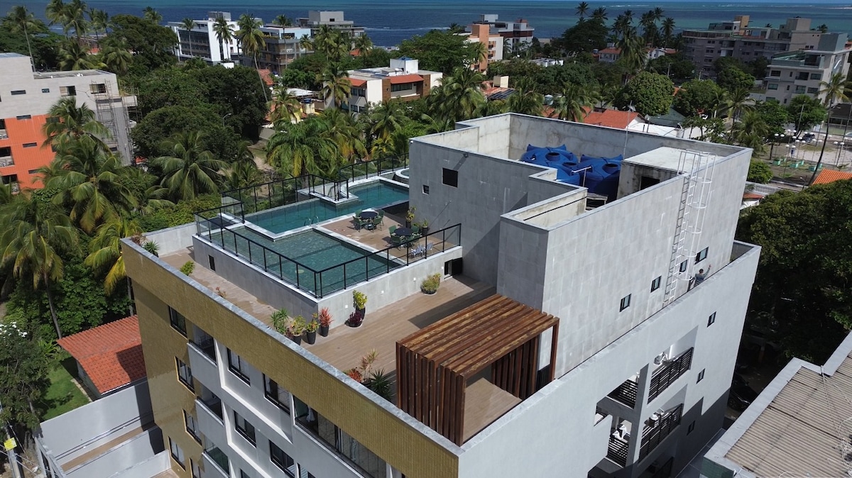 ✔️Flat di lantai 3 menghadap laut, 20 langkah dari pasir pantai dan hanya 9 menit berjalan kaki ke Rua das Sombrinhas yang terkenal, yang berada di pusat (Vilinha) Porto de Galinhas. ✔️Balkon pribadi menghadap laut, AC, TV pintar 55", kolam renang, pusat kebugaran, tempat parkir rotasi. ✔️Ideal untuk hingga 3 orang, pasangan, seprai dan handuk mandi disediakan. ✔️Lihat matahari terbit tanpa bangun dari tempat tidur, pada hari-hari dengan langit terbuka dan sesuai musim.