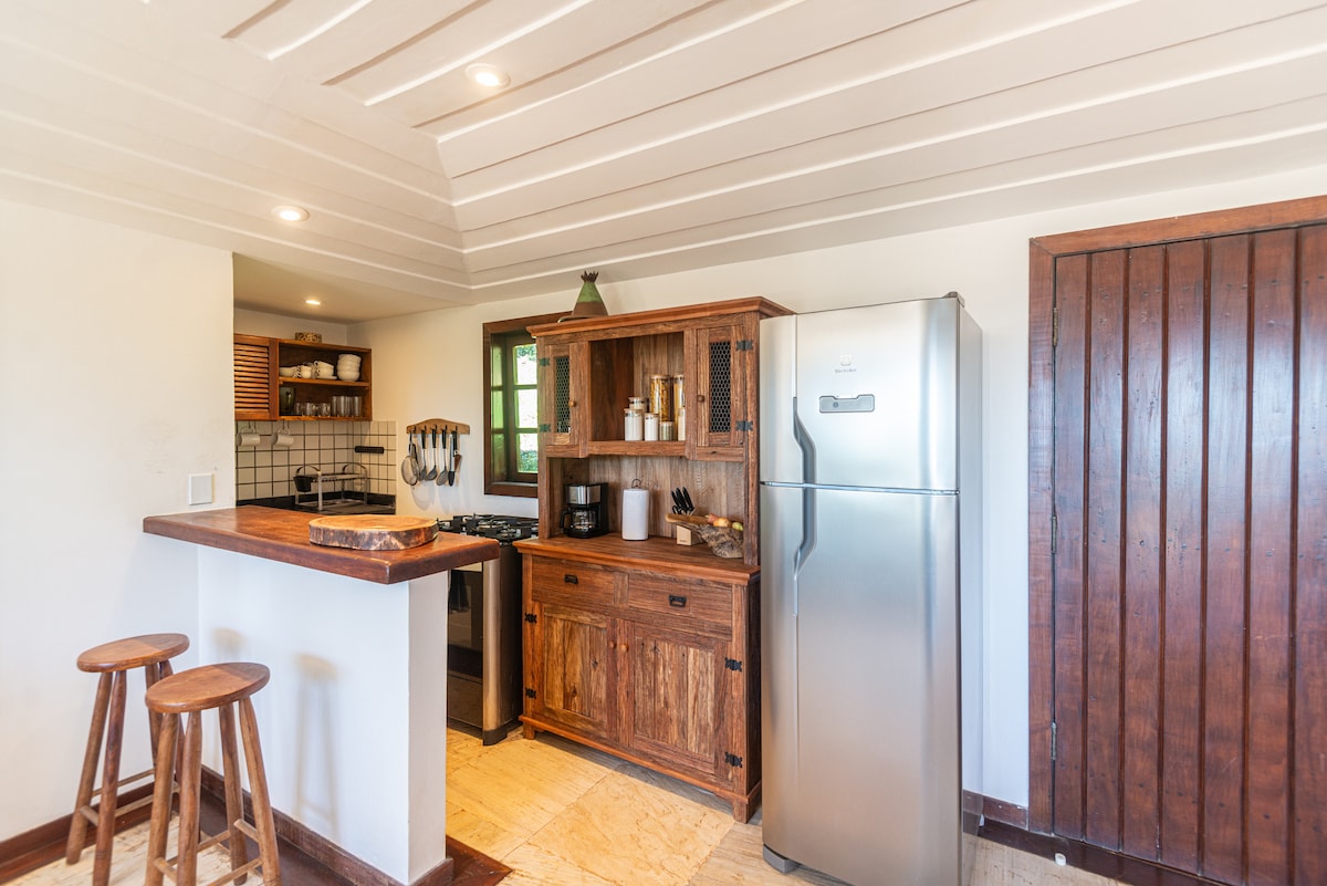 Tempat peristirahatan yang nyaman dan elegan menghadap Pantai Ferradura. Modern dan pedesaan bertemu di rumah ini. Dengan dua kamar mandi, dapur, area layanan, taman, balkon, dan semua fasilitas dasar untuk hari-hari yang tak terlupakan. 3 blok dari pantai Ferradura dan 10 menit naik mobil dari Rua das Pedras. Di dalam kondominium kelas atas dengan parkir.