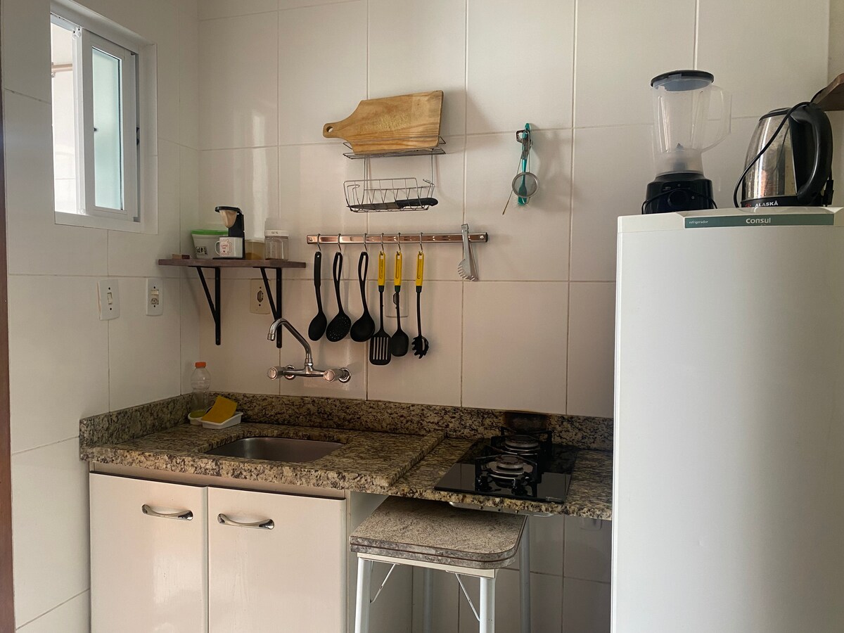 Apartemen dengan standar yang sangat baik, konstruksi baru, dengan lantai apung, ubin porselen, TV kabel (net), internet, dan dekorasi modern. Lokasi istimewa 100 meter dari patung Iemanjá dan pantai. Tempat ini memiliki dua tempat parkir dan ruang gourmet dengan area barbekyu (dari Kondominium). Apartemen ini memiliki 3 kipas angin dan peralatan memasak. Patio parkir berdinding dengan pagar listrik dan gerbang otomatis. Tempat ini mengakomodasi hingga 6 orang. Kondominium ini hanya memiliki 3 apartemen.