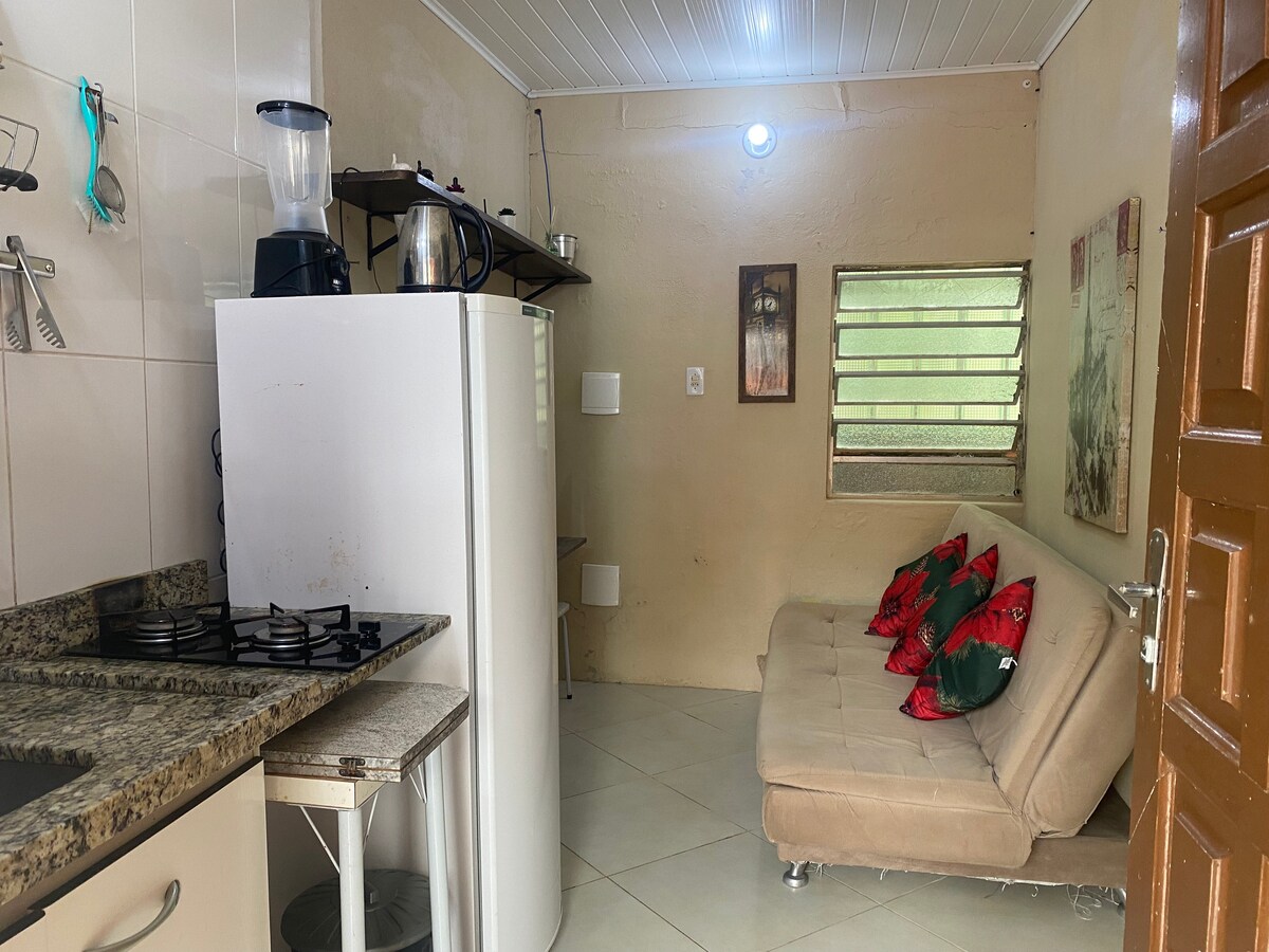 Apartemen besar dan lapang, di lantai tiga gedung ini, di lingkungan Junção. Kami dekat dengan stasiun bus kota (0,5 km). Sekitar 2 km dari Kampus FURG dan 6 km dari pusat kota. Kami berjarak sekitar 17 km dari Praia do Cassino. Apartemen ini memiliki 2 kipas angin, tidak memiliki AC. Tempat ini bisa menampung hingga 5 orang.