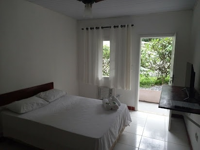 Apartamentos no segundo andar, com capacidade para até 3 pessoas com cama de casal king Size + cama de solteiro ou 3 camas de solteiro. Inclui café da manhã O apartamento possui sistema de ventilação natural com pé direito dobrado, varanda com rede, banheiro privativo, ventilador e roupa de cama e banho 100% algodão. A pousada possui bar, estacionamento (rotativo, sem guarda de vaga), piscina, sala de massagem a beira-rio, área de lazer, sala de jogos, cais próprio e serviço de quarto 24h, wifi