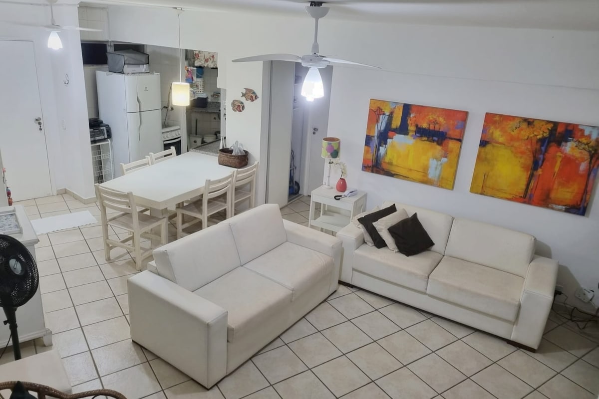 Selamat datang di sudut kecil kami di Guarujá! Apartemen kami dirancang untuk keluarga termasuk hewan peliharaan, dan mengakomodasi hingga 4 orang! Terletak di lokasi yang luar biasa, hanya 10 menit berjalan kaki dari Praia da Enseada, apartemen kami dikelilingi oleh pasar, restoran, apotek, dan hewan peliharaan. Pantainya hanya berjarak 10 menit berjalan kaki, apartemen ini juga memiliki semua fasilitas untuk Kantor Rumah, dengan internet berkecepatan tinggi, monitor, serta keyboard dan mouse nirkabel. Datang dan lihat, dan Anda pasti akan terpesona!