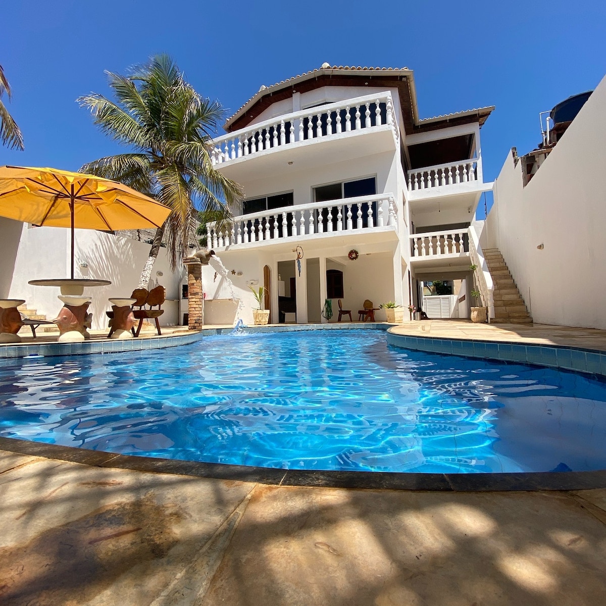 Rumah impian ini terletak di Pantai Redonda yang indah, surga alami dan desa nelayan di Ceará, Brasil. Terletak 220 km dari Fortaleza, ini adalah oasis keajaiban alam. Rumah ini memiliki struktur mewah, dengan empat suite tempat tidur double besar termasuk AC, kulkas mini, dan balkon. Kami juga kamar dengan dua tempat tidur single, dan tambahan 2 kasur single dan satu kasur double: Pemandangannya menakjubkan, namun penting untuk menyebutkan TANGGA untuk akses. Insta @CasadaRedonda.CE