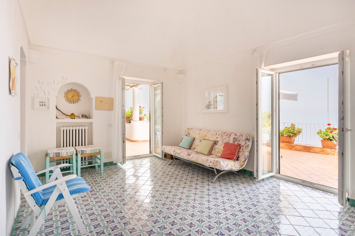 Apartemen terang yang menghadap matahari dan laut. Di pagi hari Anda bisa mengagumi matahari terbit yang spektakuler dari teras pribadi, yang dilengkapi meja dan kursi untuk bersantap di luar ruangan. Dekat halte bus, titik awal yang berguna untuk Sentiero degli Dei. Di bawah rumah ada toko kelontong yang sangat lengkap dan beberapa meter dari rumah ada tiga restoran yang sangat baik.