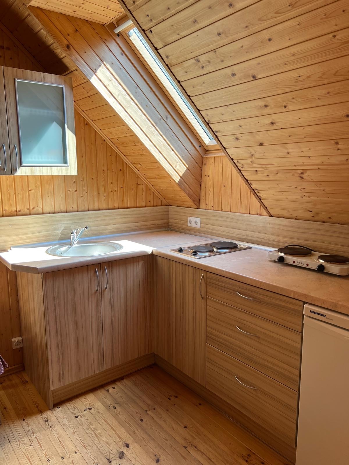 Pada bulan Juli 2020, "Pamario namelis" yang baru direnovasi dan bergaya dibuka. Ruang rumah terletak di dua lantai dan dirancang untuk 3 orang. Di lantai pertama Anda akan menemukan dapur mini, area tamu dengan sofa sudut yang dapat dilipat (145x200), toilet. Dari lantai pertama, tangga yang nyaman mengarah ke kamar tidur. Ada tempat tidur double (160x200) untuk kenyamanan Anda. Cahaya yang masuk melalui jendela atap dari selatan memberi kamar tidur perasaan yang menyenangkan akan cahaya dan ruang. Di samping rumah ada teras dengan perabotan luar ruangan, khusus untuk Anda.