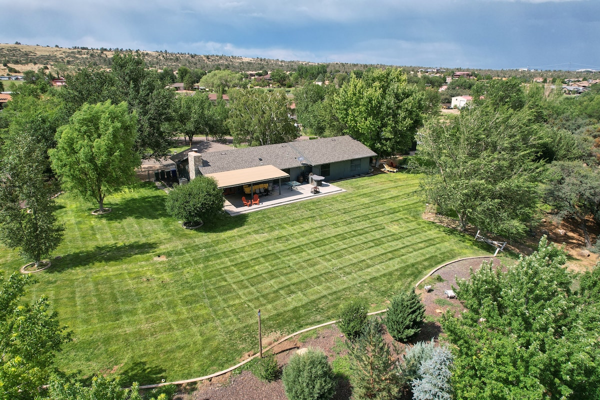 Melarikan diri ke Kastil kami di Pines. Biarkan kekhawatiran Anda mencair sambil bersantai di balkon dengan pemandangan pinus dan pegunungan. Dikelilingi oleh alam dan satwa liar, di ketinggian 7700, namun kurang dari 20 menit ke pusat kota Prescott/Whiskey Row. Nikmati kelimpahan permainan/aktivitas dalam ruangan & luar ruangan/buku/film untuk menghibur keluarga. Dapur lengkap, Anda tidak perlu pergi! Akses ke Wi - Fi YANG LUAR BIASA sehingga Anda bisa melakukan streaming film/remote kerja. RAMAH HEWAN PELIHARAAN! Biaya berlaku