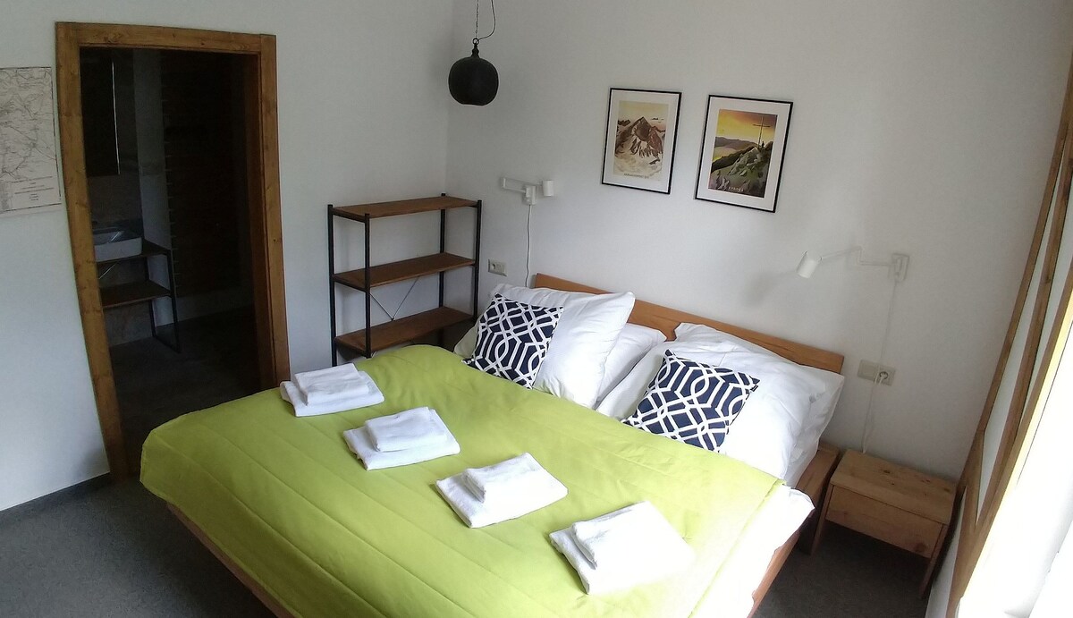 Apartemen nyaman yang terletak di tengah - tengah Stara Lesna memiliki beberapa fitur khusus yang akan membuat tamu kami merasa seperti di rumah sendiri. Kami membuatnya memikirkan keluarga dengan anak - anak tetapi juga untuk tamu dewasa. Tempat tidur ganda yang nyaman, dapur lengkap, sofa, dan tempat untuk duduk dan membaca atau bermain dengan mainan. Semua orang akan menemukan sesuatu untuk mereka tanpa menyebutkan keindahan dan udara sehat High Tatras.
