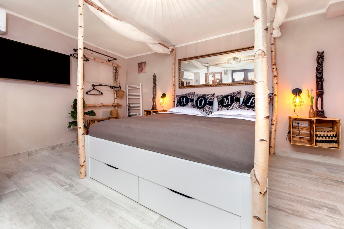 Izinkan saya menyampaikan sambutan hangat ke Studio City saya yang baru direnovasi, yang terletak di jantung Rovinj. Terletak hanya 10 menit berjalan kaki yang menyenangkan dari laut, tempat ini menawarkan teras besar yang menawarkan pemandangan indah perairan biru di bawahnya. Sangat cocok untuk menikmati sarapan atau menikmati malam yang tenang, tempat ini menjanjikan pengalaman yang tidak terlupakan. Sebagai bonus tambahan, dua sepeda tersedia gratis untuk eksplorasi Anda tentang lingkungan yang menawan. Selamat datang