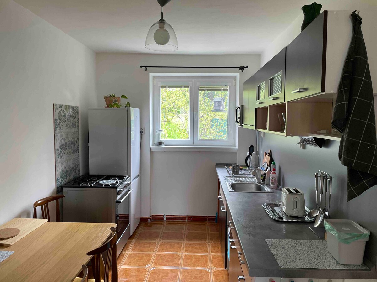 Anda akan merasa seperti di rumah sendiri. Apartemen berperabot pedesaan yang indah ini menawarkan kenyamanan, kedamaian, dan santai. Baik setelah seharian makan malam dengan cahaya lilin di dapur berperabot lengkap, menonton sesuatu di Netflix atau HBO Max di sofa yang nyaman, atau mandi dengan busa di bak mandi besar, Anda akan menemukan semua ini dan banyak lagi di apartemen ini. Dan jika Anda ingin keluar dari sana, Kastil Bojnice hanya berjarak 2 km, dan Anda memiliki pusat perbelanjaan di ujung jari Anda. Tempat indah lainnya yang dengan senang hati akan saya bagikan kepada Anda.