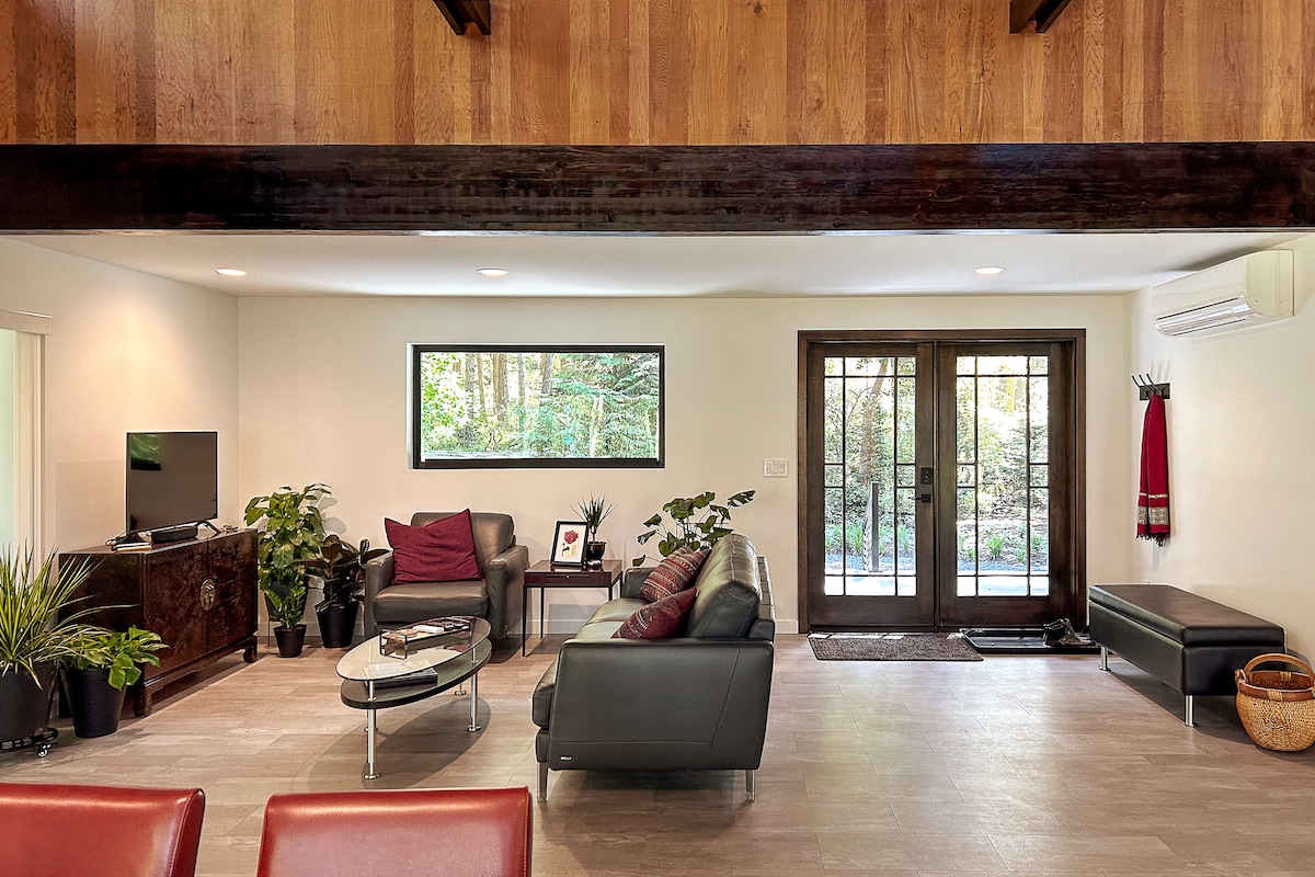 Berkunjunglah ke peternakan WATERFRONT kami di luar Langley di Pulau Whidbey yang indah dengan Eagles & Highland Cows. Keluarga kami telah tinggal di sini sejak tahun 1890, dan kami memiliki pondok tamu yang luar biasa di tepi sungai yang tinggi dengan pemandangan 180 derajat Saratoga Passage, Mount Baker, dan North Cascades. Dengan luas ruang tamu terbuka seluas 900 kaki persegi, perapian, dapur lengkap, mesin cuci/pengering, tempat tidur berukuran king, internet berkecepatan tinggi, 2 TV, perabotan cantik, dan akses mudah ke pantai, tempat ini adalah tempat liburan yang sempurna!