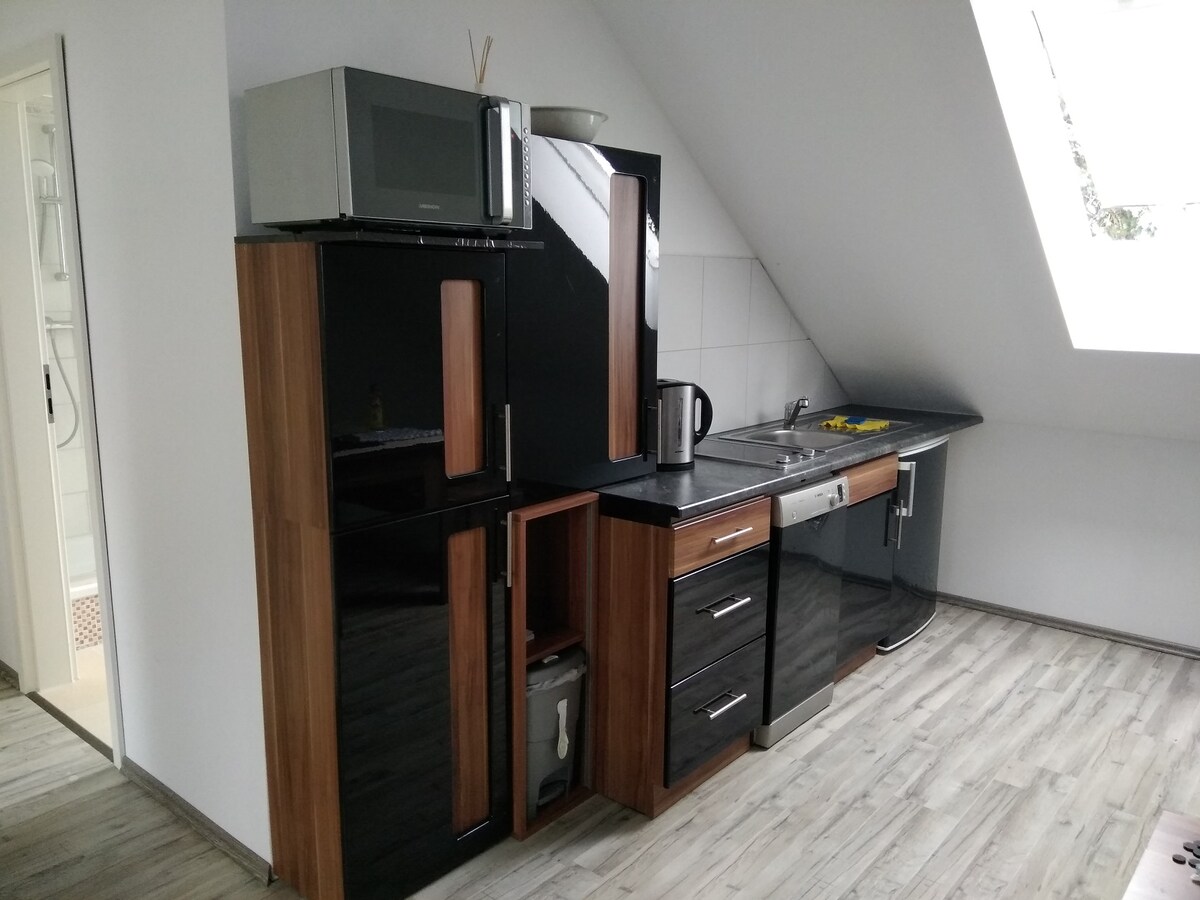 Wir bieten unsere schöne Einliegerwohnung im Dachgeschoss unseres renovierten Doppelhauses mit Garten an. Die Einliegerwohnung mit eigenem Badezimmer (Dusche / WC) und kleiner voll ausgestatter Küchenzeile verfügt über alles was man für einen kurzen Aufenthalt benötigt. Wir wohnen selbst im Erd-/Obergeschoss, sprechen Deutsch, Englisch, Russisch, Türkisch, und ein wenig französisch. Bei euerer Buchung erklärt bitte etwas genauer was ihr vor habt und wer genau anreisen wird. Danke!