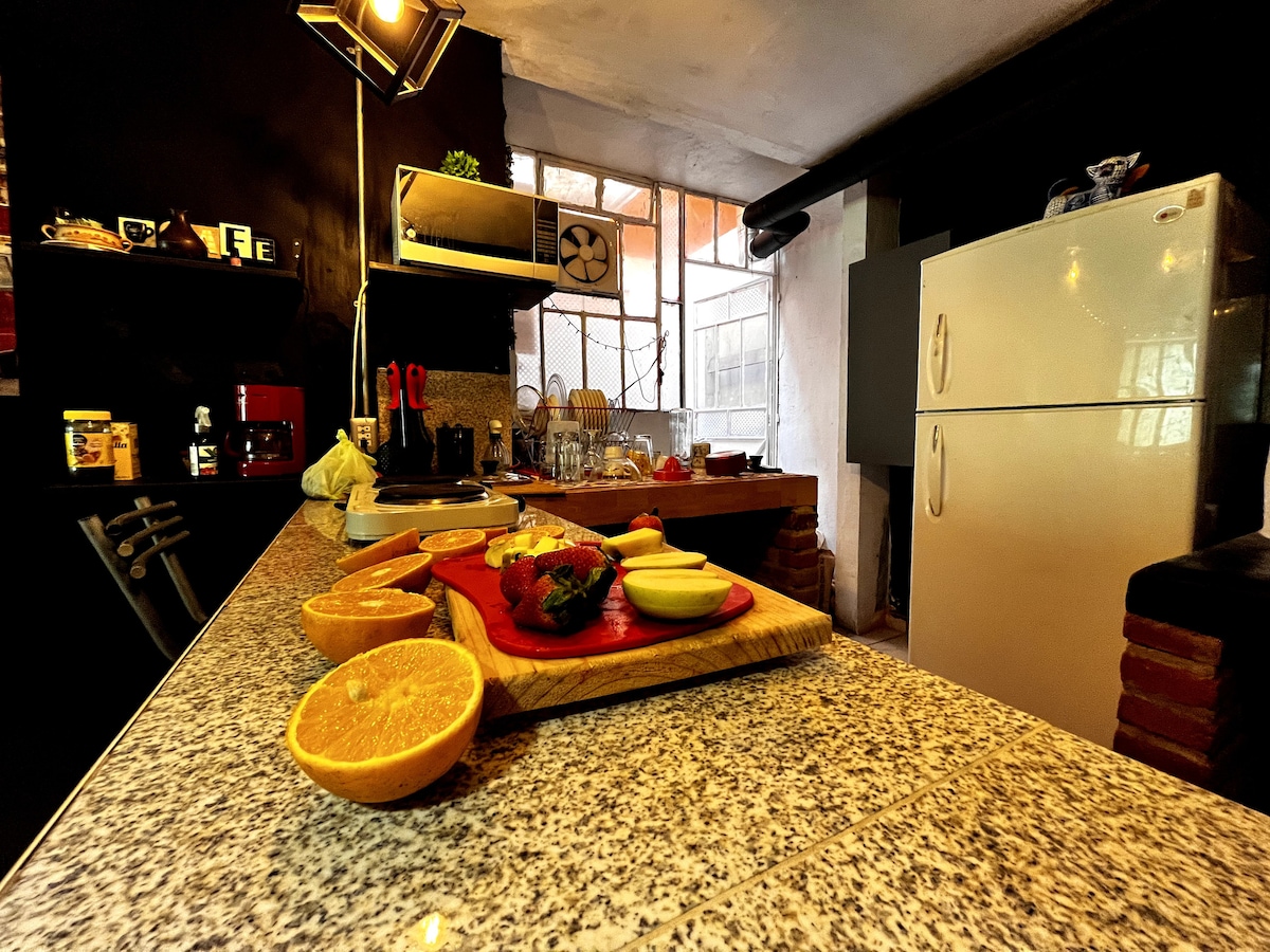 Saya menawarkan apartemen yang indah dan luas di bangunan yang direnovasi di Pusat Bersejarah Puebla dengan kamar yang tersedia; memiliki kamar mandi, tempat tidur yang nyaman, dan semua fasilitas; untuk masa inap yang tenang dan pemandangan kota yang luar biasa dari Taman Atap bangunan. Tempat ini memiliki oven microwave, kompor, pemanggang roti, peralatan dapur, dan semua fasilitas untuk merasa seperti di rumah.