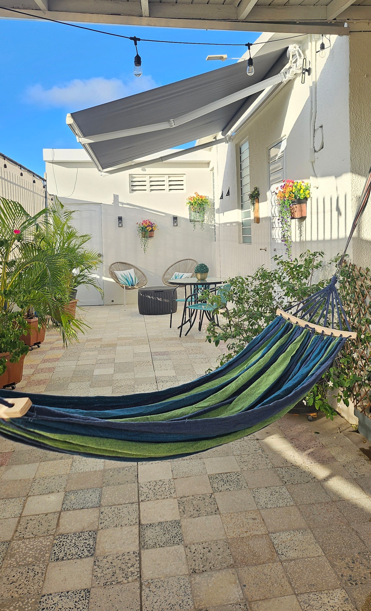 Selamat datang di rumah kami yang cerah dan damai! Bersantai di tempat tidur gantung, bermeditasi, atau melakukan yoga di balkon. Nikmati dapur lengkap, Wi - Fi cepat, TV, dan AC di seluruh apartemen. Mengemudi? Jangan khawatir - kami memiliki tempat parkir gratis. Dan perjalanan singkat, Anda bisa dengan mudah menjelajahi Old San Juan, pergi ke pantai, atau menuju bandara. Datang terlambat atau berangkat lebih awal? Proses check - in mandiri kami memudahkan dan tidak merepotkan. Kami tidak sabar menunggu Anda merasakan tempat peristirahatan kami yang nyaman!