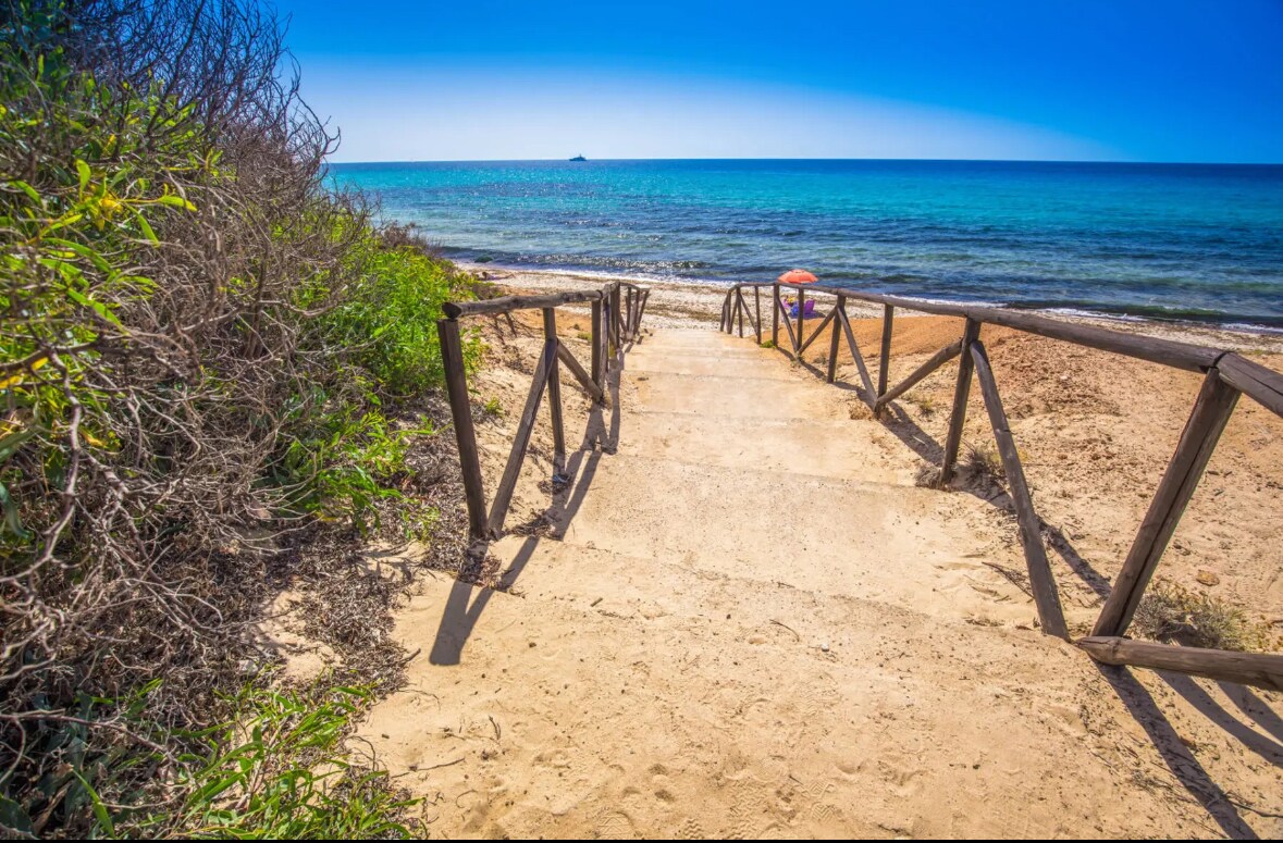 Apartemen ini menawarkan beranda besar dengan pemandangan indah laut Sardinia yang berkilauan, dibingkai oleh pohon palem dan pulau San Macario dengan Menara Spanyol kuno, di kejauhan marina Perd' es Sali. Sebelum dicium oleh sinar matahari, Anda bisa menyelam ke dalam air sejernih kristal di bawah rumah. Pantai kerikil/pasir campuran berjarak sekitar 50 meter. Tempat ini juga merupakan tempat ideal untuk menjelajahi seluruh Sardinia Selatan dan pantai dan lanskapnya yang megah.