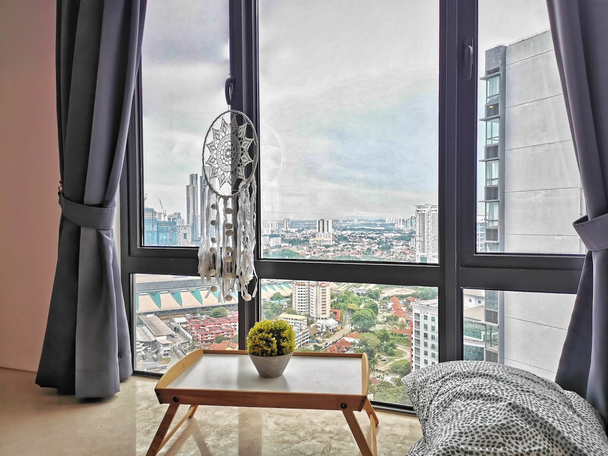 This is a spacious 2Bedroom unit perfectly fit for guests up to 5 pax with total of 1 king size bed 1 queen size bed 1 single bed High floor with high view. 1. Basketball Court 1. Gym Room 2. Function Hall 3. Lounge 4. Library 5. Manicure Shop 6. Mini Theatre 7. BBQ Deck 8. Swimming Pool 9. Sauna 10. Jacuzzi 11. Game room (Pool Table, PS Room, Darts and more) 12. Laundry 13. Mini Market -Sky Garden Guest are not allow to smoke in the room , please smoke at the balcony if needed