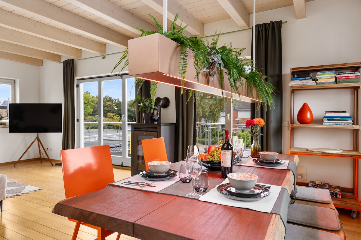 Nikmati Cologne di tingkat tertinggi di apartemen liburan kami yang nyaman. Selamat datang di apartemen 100 m² yang nyaman ini, yang menawarkan segala yang Anda butuhkan untuk masa inap yang luar biasa di Cologne: → Tempat tidur nyaman Parkir → gratis. Smart TV→ 55 inci → Dapur & mesin Nespresso → Perabotan unik → Suasana lapang → Perapian → Koneksi sempurna dengan mobil. ☆“Anda benar - benar merasa seperti di rumah sendiri. Kami akan memesan dengan Svyvo lagi dan lagi!”