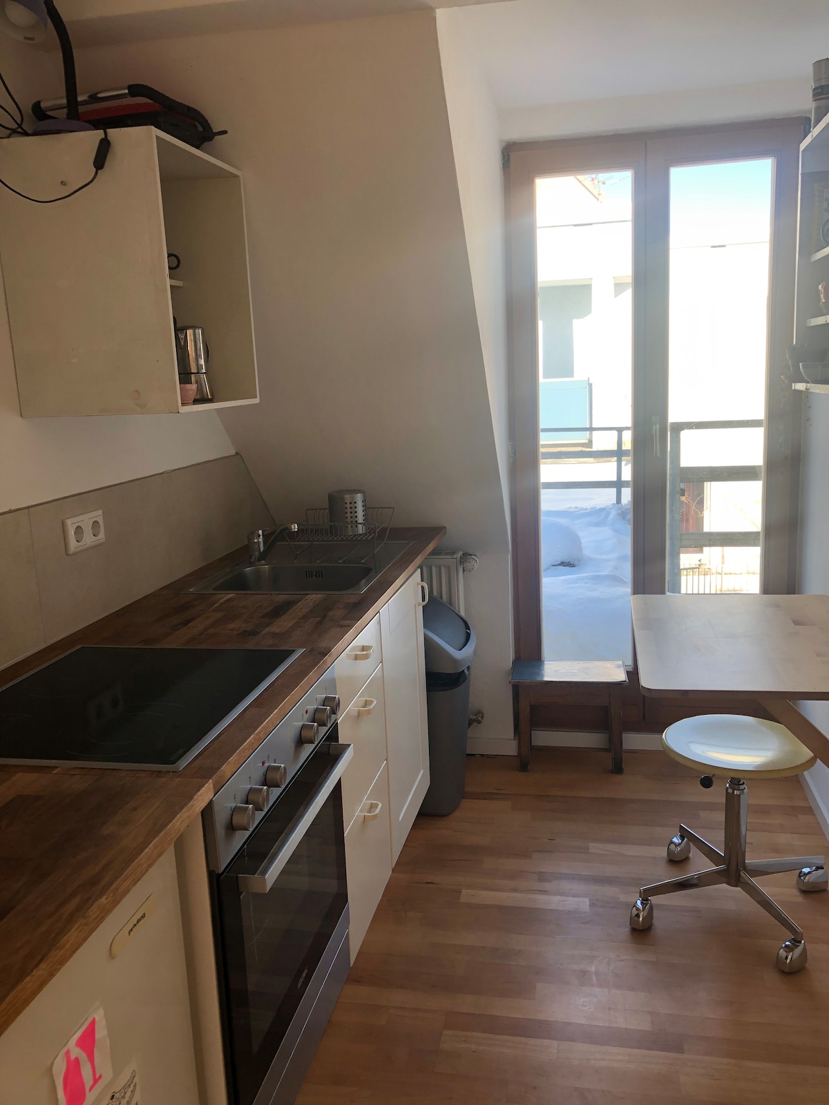 Sekarang juga masa inap jangka panjang! Halte bus tepat di luar pintu 5 menit ke U - Bahn Forstenrieder Allee langsung ke Marienplatz dan Oktoberfest Tidur dan tinggal di 41 meter persegi dengan tinggi kamar 3,90 m tidak ada kamar tidur ekstra yang tersedia Tempat tidur ganda ukuran King dengan kasur lengkap Tempat tidur sofa dengan atasan untuk dua orang Tirai blackout Lantai parket kayu asli Wi - Fi Kecepatan Tinggi. Smart TV Dapur cincin sampel baru Parkir Mesin cuci BARU + mesin pengering di dalam rumah