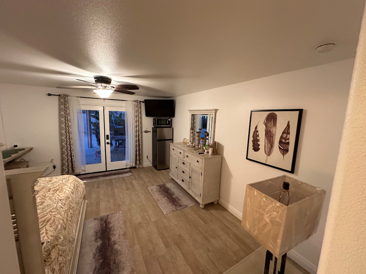 SUITE PRIBADI LEBIH BAIK DARI HOTEL! Harap pastikan Anda membaca peraturan rumah sebelum memesan! Ruang ▪️pribadi, kamar mandi pribadi, dan pintu masuk pribadi yang mirip dengan suite hotel Tempat yang ▪️ sempurna untuk 2 tamu (maksimal di properti) tidak ada anak kecil Lingkungan yang ▪️sangat aman di cul - de - sac yang terpencil Parkir RV ▪️besar dengan kamera perekam gerak 24 jam Pengisi Daya EV ◾️ Level 2 48 Amp (dengan biaya). Balkon ▪️besar dengan meja, kursi, payung, dan perapian gas ▪️AC dan pemanas yang tenang dikontrol di ruangan