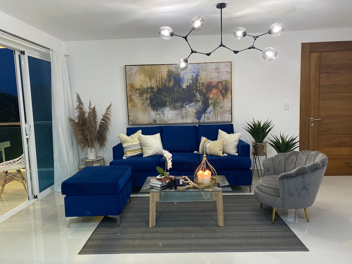 Apartemen baru ini adalah tempat menginap yang sempurna untuk liburan keluarga dan teman. Lokasinya 10 menit dari Bandara Santiago, penuh dengan fasilitas, dan berperabot lengkap. Ada 3,5 kamar mandi, 3 kamar tidur dengan AC dan kamar tidur tamu dengan tempat tidur twin, kipas angin, dan kamar mandi sendiri. Dapur lengkap, Dua ruang tamu, AC, Dua Smart TV 50", Speaker Bluetooth dan dua tempat parkir. Anda juga bisa menikmati lingkungan kompleks seperti, taman bermain, kolam renang, ruang acara, danau, dan lapangan olahraga.