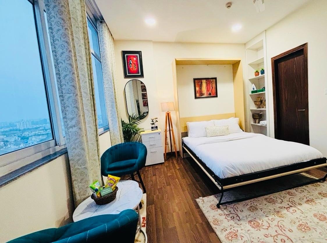 Kami terletak di antara Zirakpur. Jalan Raya Ekspres Chandigarh Delhi. This is 11th Floor Luxury Studio Apartment With All Basic Facility's at Motia Royal Business Park Building with Sky View. Sepenuhnya Mandiri dan Cocok untuk Pasangan, Teman, atau Wisatawan Bisnis Mencari Gateway mereka.