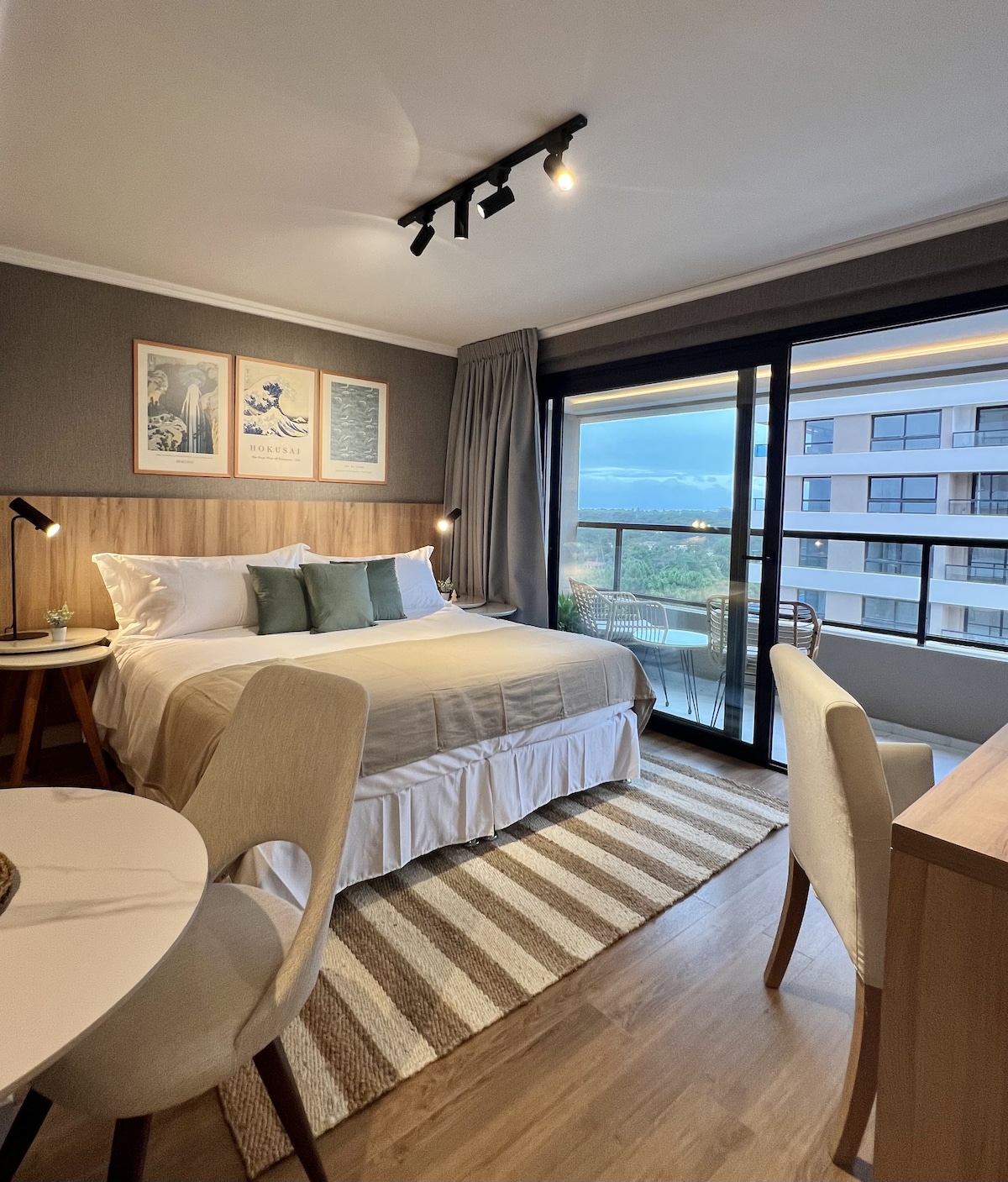 Estudio boutique ideal para parejas y viajeros. Este espacio combina cálido diseño contemporáneo con todas las comodidades de un hotel de lujo. Cama King, menú de almohadas, televisor de 55” con streaming, wifi de alta velocidad y balcón privado. Cocina totalmente equipada y café de cortesía. Cuenta con aire acondicionado, baño privado completo, secador de pelo y caja fuerte. El acceso a todas las amenities está incluido. Servicio de Playa (Pda 16 de la Mansa) en temporada con traslado.-