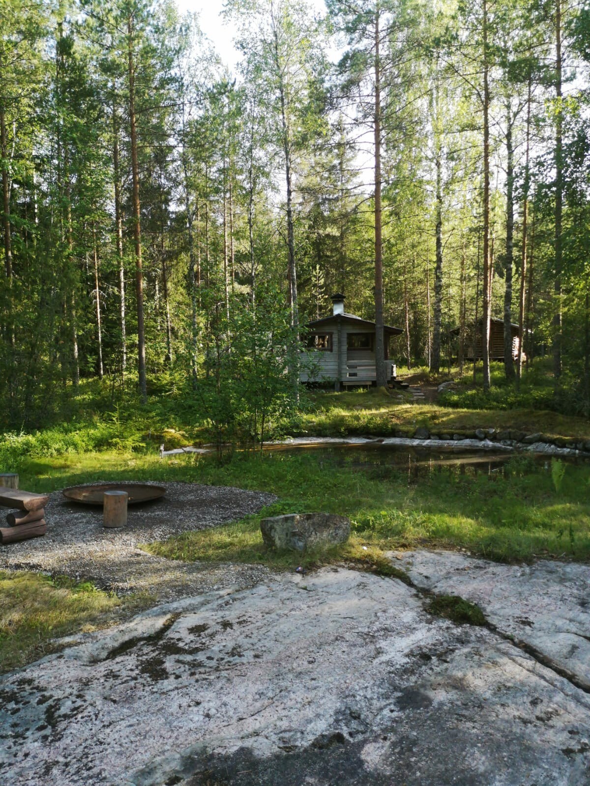 Mökki lammen rannalla. [Sauna, Luonto ja Rauha]