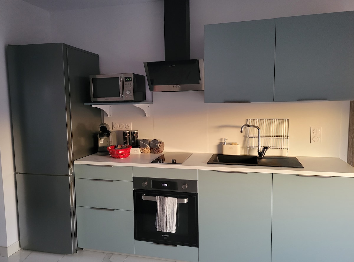 Apartemen yang telah direnovasi T2 seluas 60m2 Fasilitas tempat: - Bak mandi air panas balneoterapi 2 tempat duduk - TV di kamar tidur turun dari langit - langit - pengering handuk, - 140 tempat tidur dengan perlengkapan tempat tidur premium - 140 tempat tidur sofa (slatted) di ruang tamu - Dapur lengkap - AC reversibel - Seprai, handuk mandi, produk kebersihan - Teras kayu 14m2 dengan kursi goyang, meja dan kursi untuk sarapan menonton kuda - taman bermain luar ruangan