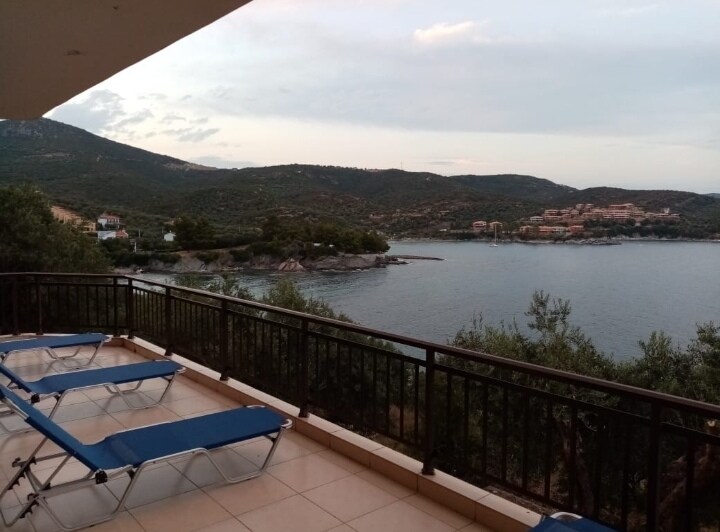 Berliburlah ke desa Pyrgadikia yang menawan, tempat Bellevue – Panoramic Seaview Penthouse menanti Anda. Terletak di teluk Sithonia yang indah di Chalkidiki, penthouse liburan kami dirancang untuk memanfaatkan pemandangan yang indah, dengan jendela besar dan pintu kaca yang terbuka ke tiga balkon yang menawarkan pemandangan panorama Laut Aegea dan Gunung Suci Athos.