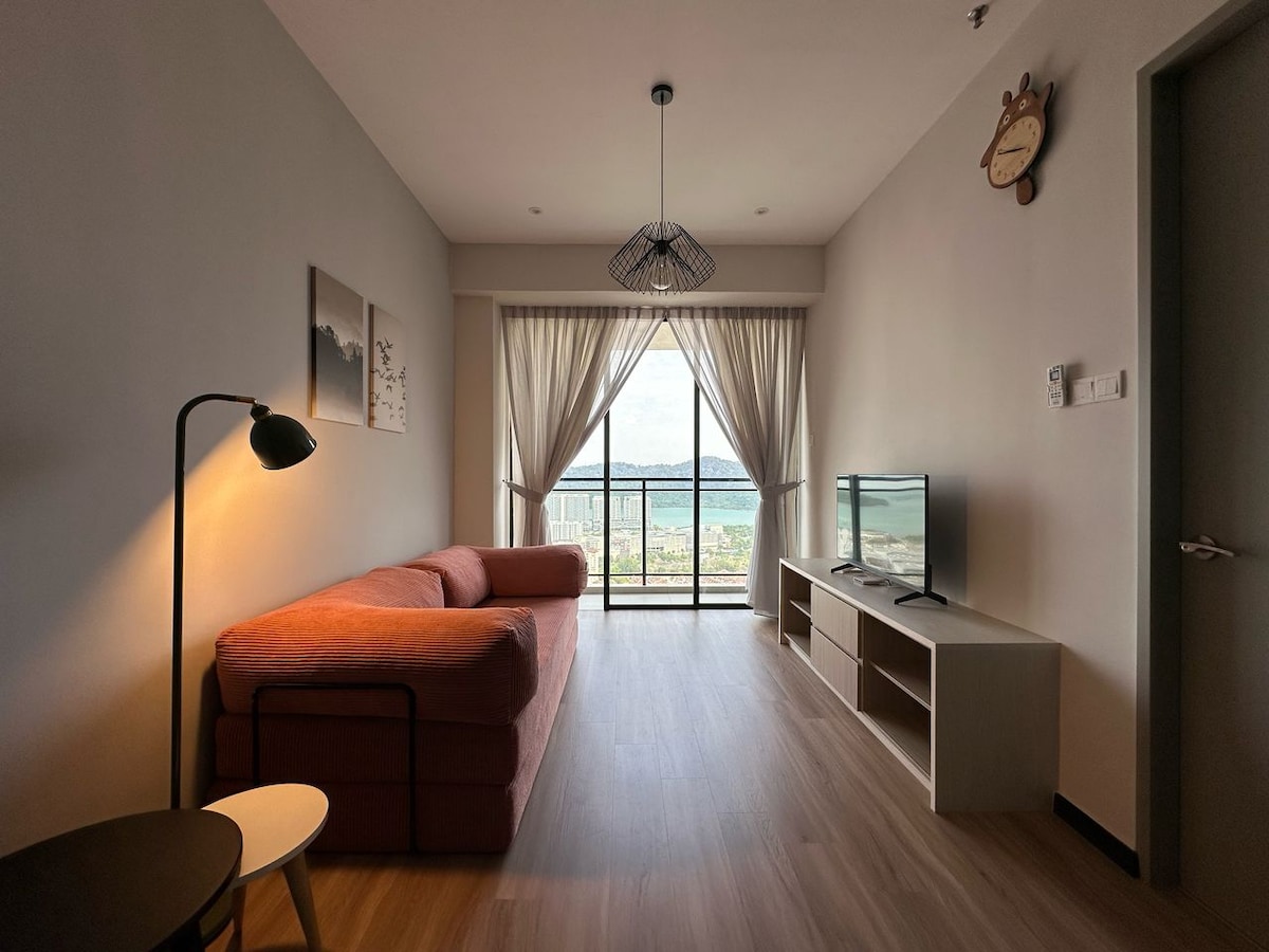 Suite Studio Pemandangan Laut Nyaman (Check - in yang tersedia hanya untuk mengemudi sendiri) Penginapan kami adalah studio suite & kondominium pribadi di dekat jembatan Penang dengan lokasi strategis di mana Anda dapat dengan mudah mengakses jembatan Penang, pusat perbelanjaan queensbay, dan zona industri Bayan Lepas. Suite studio kami menawarkan satu mobil atau satu tempat parkir motor dan ini adalah studio konsep terbuka tanpa kamar tidur dan dapur yang terhubung yang cocok untuk pasangan muda atau keluarga dengan anak kecil dan dapat mengakomodasi hingga 2 dewasa dan 1kid dengan nyaman