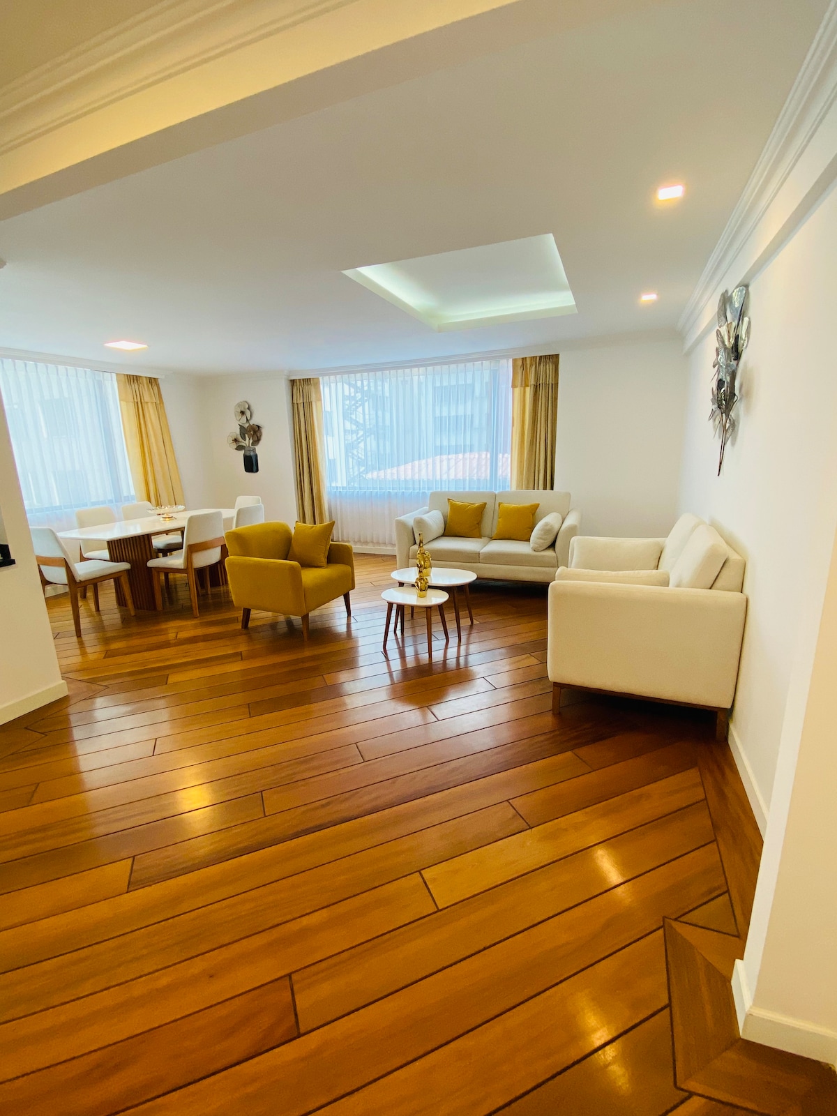 Suite moderna e independiente con parqueo, en el centro-norte de Quito, ubicada en edificio moderno y zona residencial tranquila. Cuenta con permisos legales de funcionamiento y excelente ubicación, cercana a centros comerciales, zona financiera y al Parque La Carolina. Dispone de dormitorio con cama queen, espacio de trabajo, baño completo, cocina equipada, comedor, internet, Netflix, Magis TV, libros y parqueo en el edificio. Servicio de limpieza disponible con costo adicional.