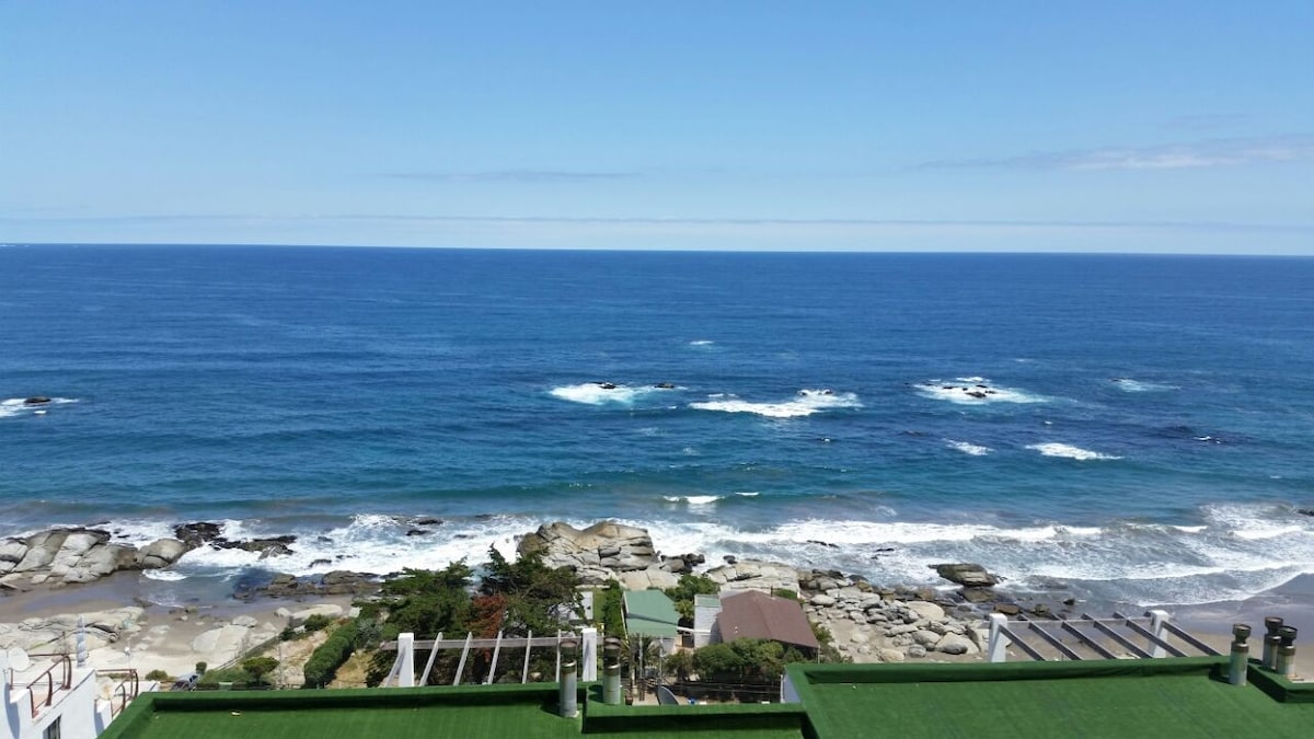 Apartemen lengkap dengan pemandangan panorama laut yang damai di kondominium dengan concierge 24 jam, di depan pantai Chungungo, Memiliki 3D dan 2B, total 7 tempat tidur. Dapur lengkap dan pemanggang listrik di teras, memiliki 2tv di ruang tamu dan kamar tidur utama, wifi, netflix, tvcable, speaker, koleksi film, pemanas sentral dan kayu, mesin cuci piring, mesin cuci dan pengering pakaian, seprai dan handuk. 2 tempat parkir dan ruang bawah tanah dengan peralatan pantai (kursi, tabir surya, ember,dll.).