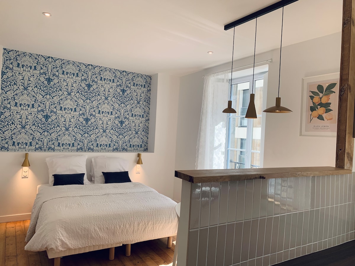 Selamat datang! T2 cerah yang didekorasi dengan selera tinggi ini terletak di seberang stasiun di cul - de - sac yang tenang. Tempat ini memiliki ruang tamu modern dengan dapur terbuka, kamar tidur yang luas dengan ruang ganti besar, dan kamar mandi. Tempat ini dilengkapi dengan sofa bed yang nyaman, mesin cuci, microwave, mesin kopi espresso, TV dengan Netflix dan wifi. Stasiun kereta api berjarak beberapa detik, pusat kota berjarak 10 menit berjalan kaki dan pantai berjarak 20 menit berkendara.