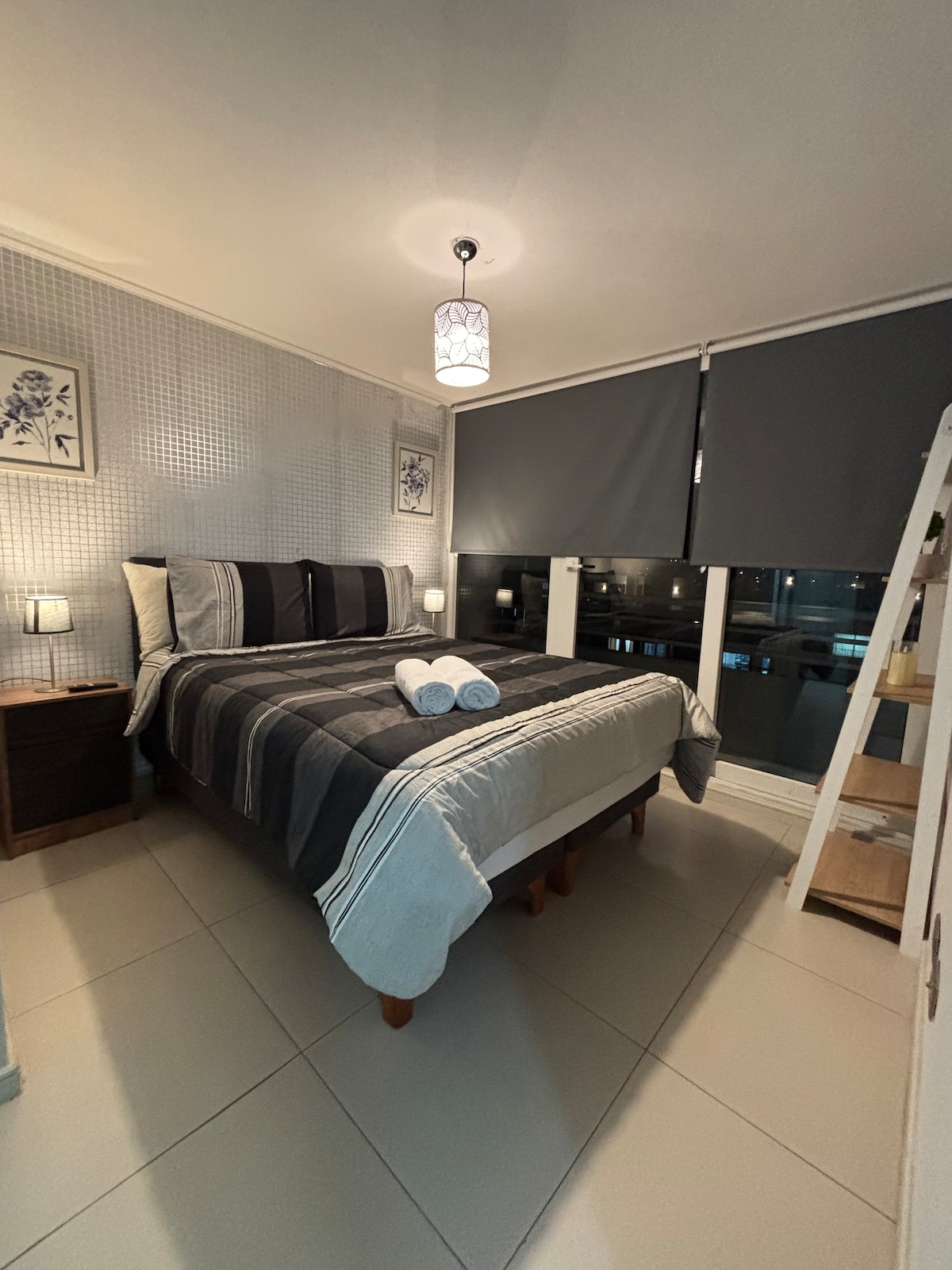 1 kamar tidur en suite dengan kamar mandi dan lemari, di pusat Santiago Centro. Kolam renang dan teras luar ruangan musiman. Ruangan besar, dapur lengkap dan ruang tamu yang bagus. Smart TV dan Wi - Fi. Parkir pribadi dan tertutup. Lokasinya sempurna! Anda dekat dengan pusat kota bersejarah, taman, supermarket, dan restoran dan bar terbaik di pusat kota. Lingkungan yang tenang dan aman dengan akses dekat ke Autopista Costanera Norte.
