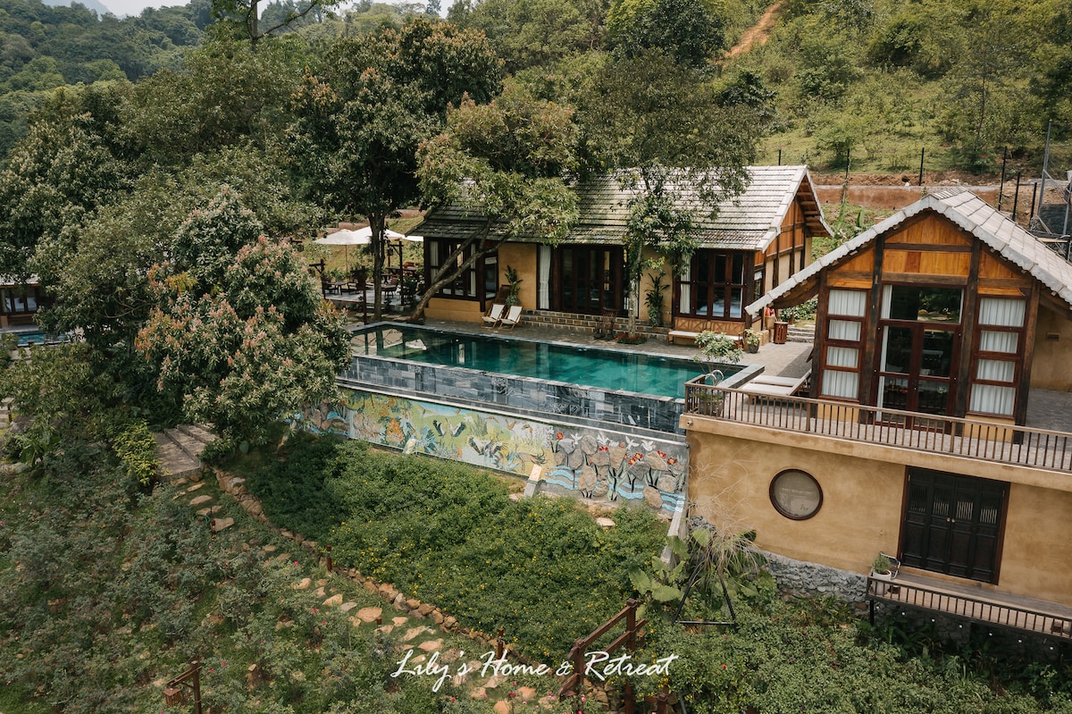 Khu Nguyệt Quế bao gồm 2 bungalow tại Lily’s Home & Retreat được thiết kế tinh tế và thông thoáng với rất nhiều không gian mở, tối đa hóa ánh sáng tự nhiên, chất liệu sử dụng gỗ kết hợp mái ngói cùng tường đất tạo nên một không gian ấm áp, gần gũi với thiên nhiên, mang đến cho quý khách sự mộc mạc và thơ mộng đầy quyến rũ. Cách Big C Thăng Long (Trần Duy Hưng) chỉ 30km với khoảng 30 phút di chuyển nhanh chóng và thuận tiện.