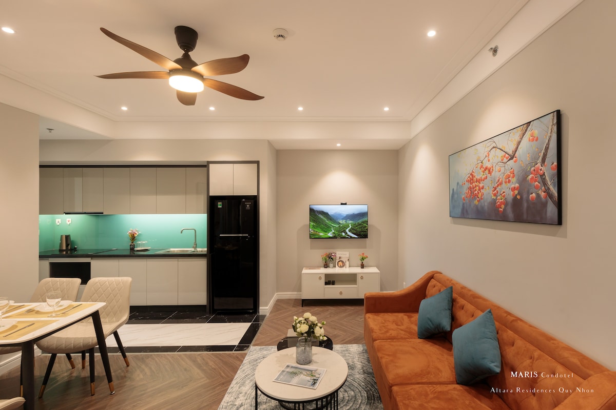 Selamat datang di tempat peristirahatan tepi laut yang santai di pusat kota Quy Nhon! Studio modern dan nyaman dengan balkon pemandangan laut ini terletak di dalam TMS Quy Nhon - Hupasearest - hanya berjarak 2 menit berjalan kaki dari pantai. Sangat cocok untuk pasangan, pelawat solo, atau pelawat bisnis yang mencari tempat yang bersih dan berperabot lengkap seperti rumah Anda sendiri. 🛏️ Studio dilengkapi dengan: 1 tempat tidur berukuran King yang nyaman. AC, Wi-Fi, Smart TV. Dapur kecil dengan kulkas, peralatan memasak. Kamar mandi pribadi dengan air panas