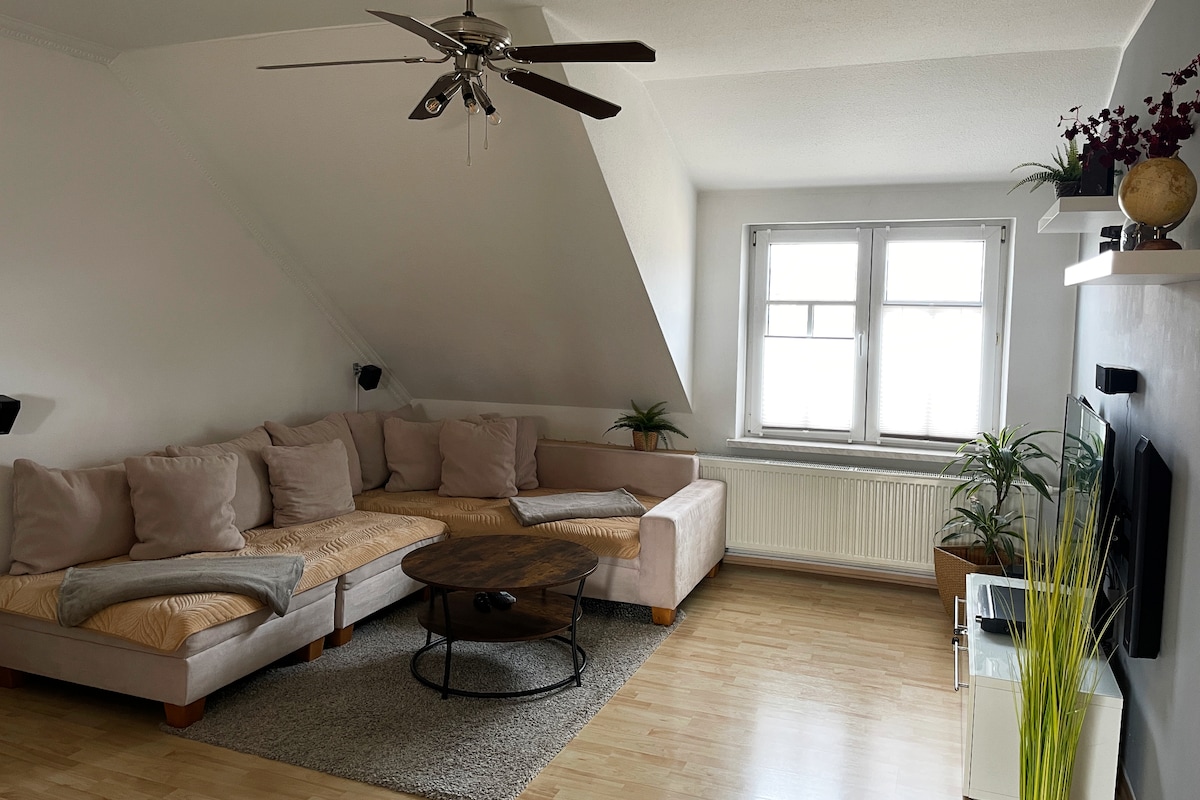 Tamu yang terhormat, Kami sangat senang menerima Anda! Kami menyewakan apartemen loteng yang indah dengan balkon dan pemandangan ke arah Radebeul Ost untuk 2 orang + anak kecil. Dresden, Moritzburg, Meissen, dan Swiss Saxon yang indah mudah diakses dengan transportasi umum atau dengan sepeda. Sepeda dapat disewakan selama jam operasional di "Rad Haus ". Pembalap juga dipersilakan. Salam hangat dari Radebeul