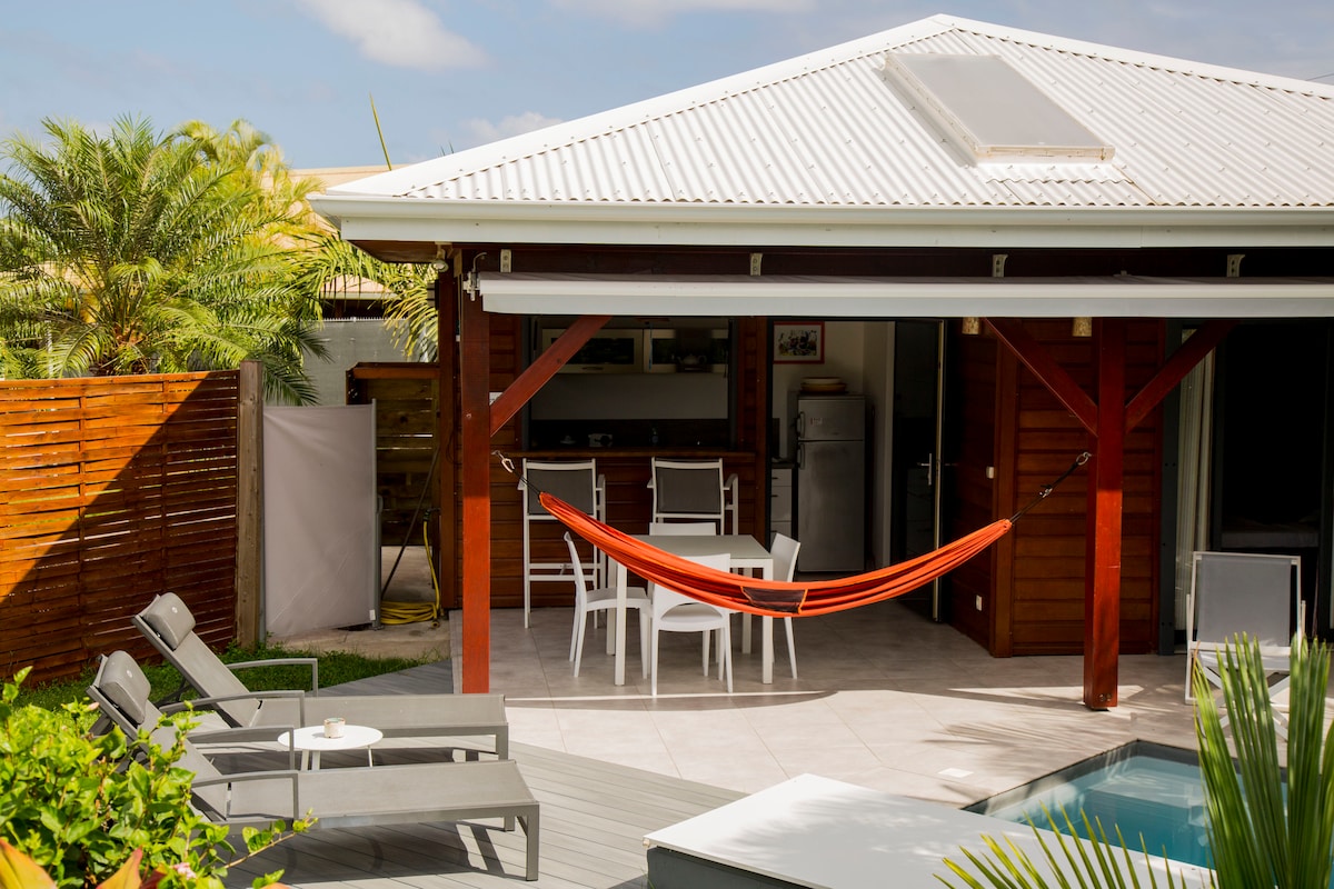 Selamat datang di PAVILIUN! Kami menantikan kedatangan Anda di rumah 80m2 baru - baru ini dan bergaya dengan kolam renang pribadinya. Terletak di daerah yang tenang di St François, lokasinya kurang dari 5 menit dari pusat kota (toko, marina, golf, lapangan terbang, pantai...) Properti ini mendapatkan manfaat dari suasana yang santai dan ventilasi alami. Sempurna untuk liburan yang tenang.